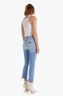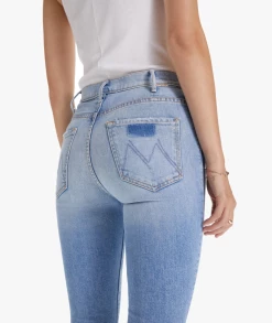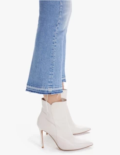 The best selling jeans are back – the Mother Denim Hustler Ankle Undone Hem in On My Way colourway are a high-rise flare that has an ankle-length inseam and an undone hem. Cut from semi-rigid denim with minimal stretch, these faded blue jeans are SUPERIOR.