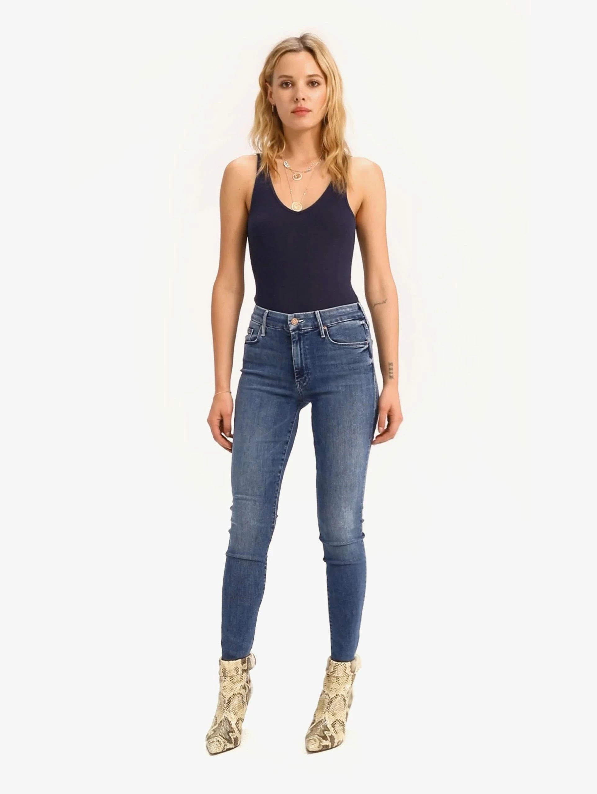 The MOTHER The Looker is a class act in her mid-rise, skinny jean. This deep blue wash features subtle whiskering to the pockets.