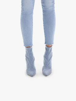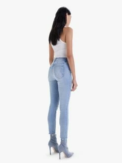 The Stunner jeans from Mother Denim in innerspace are a high-rise skinny jean with a button fly, ankle-length inseam and a raw hem. Made from versatile stretch denim in a light wash.