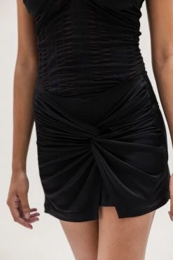 The Musier Paris Arki Dress is a chic fitted mini dress with double straps, chest in gathered and adjustable jersey. Bust in soft tulle, flexible and openwork, draped skirt in jersey. Pair with a sleek strapy heel or chunky boots for a more relaxed look.Â