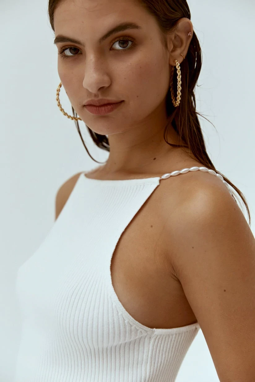 The Musier Paris Drew Top in White. A Halter top in ribbed cotton featuring a low back and finished with Pearl straps.