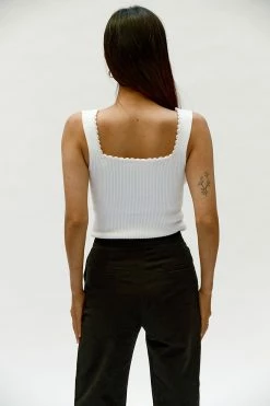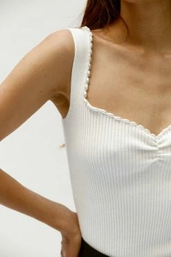 The Musier Paris Pearl Top in White. A strappy tank top featuring a sweetheart neckline highlighted with white pearls.