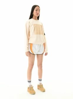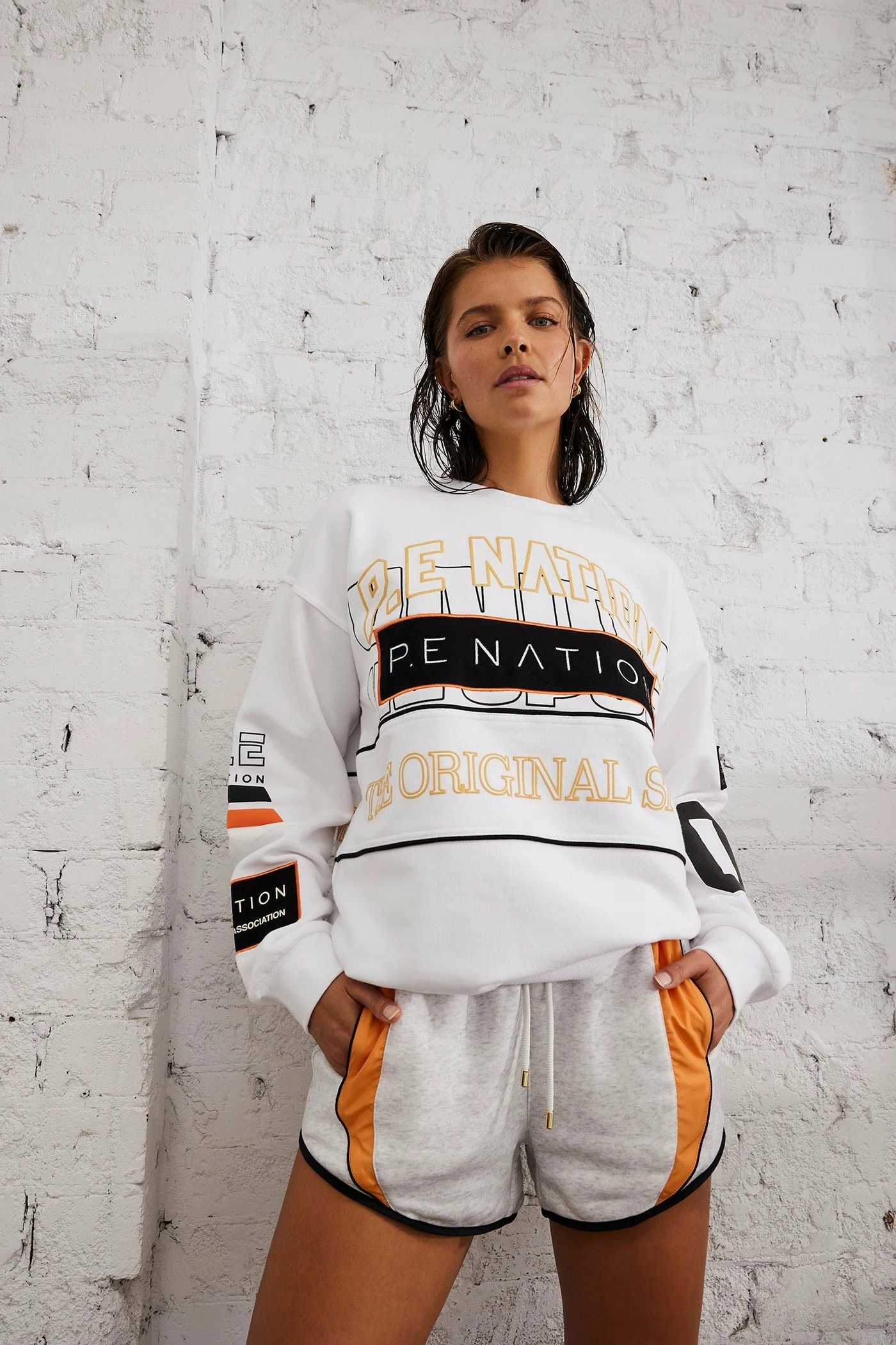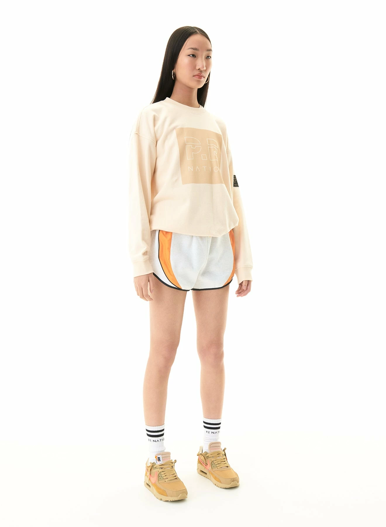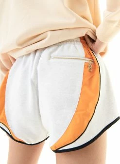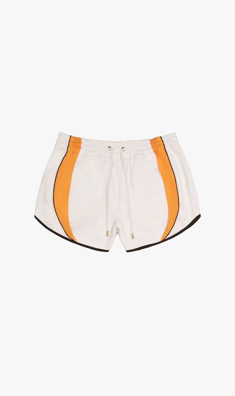 The P.E NATION A-Frame Short in Grey Marle is a relaxed fit fashion short that elevates your look. featuring an A-Frame fit that softly brushed organic cotton blend fabrication for an elevated earth-friendly essential. Contrast curved panels in orange and add signature P.E Nation colour-block detailing. Designed with a functional drawcord at the waistband and back zip pocket feature gold-plated P.E Nation hardware.
