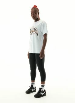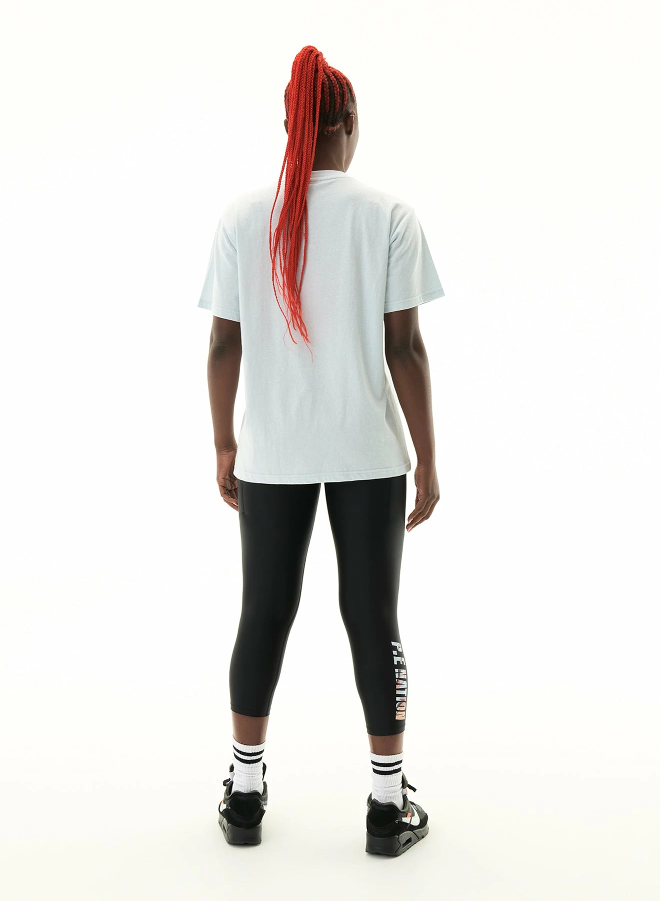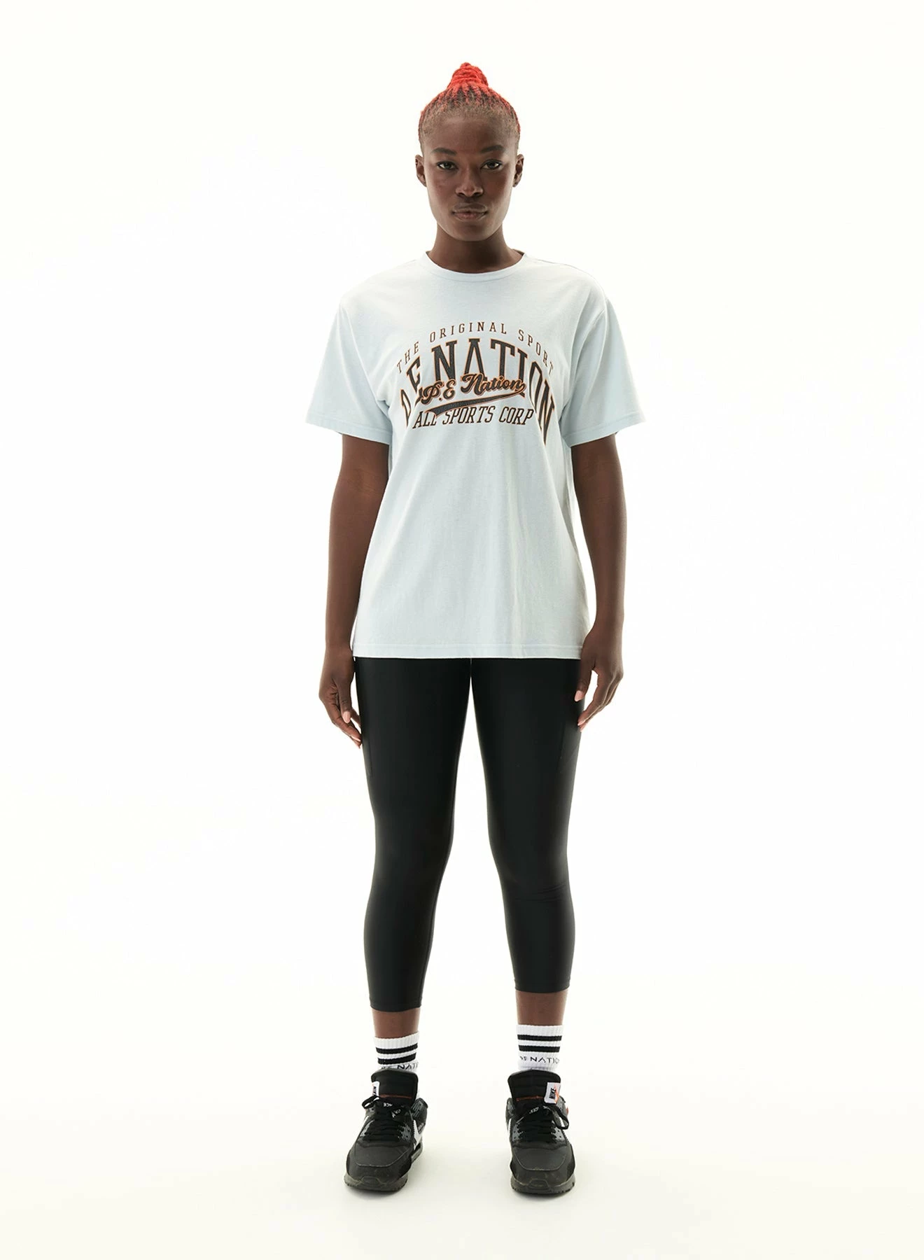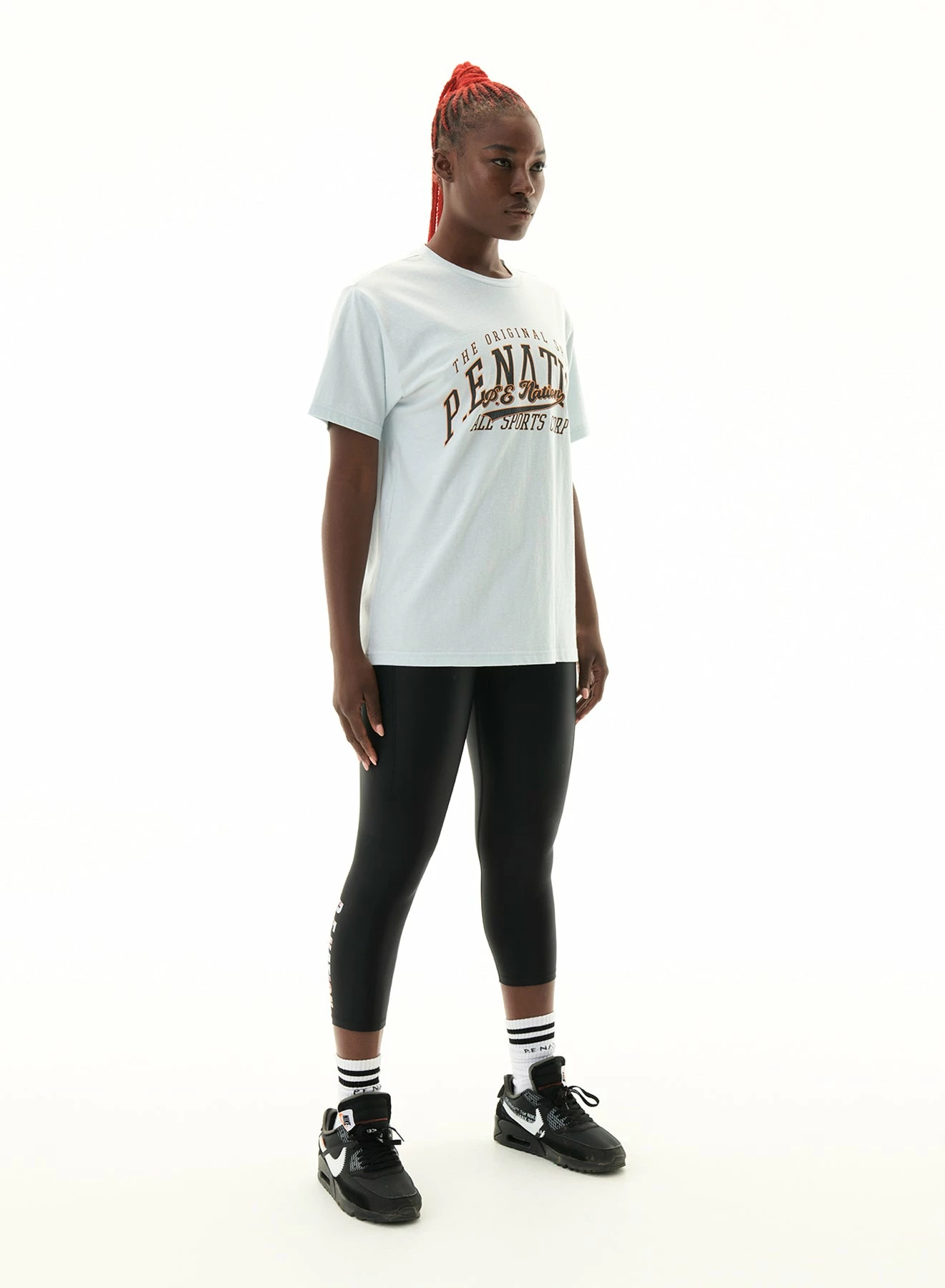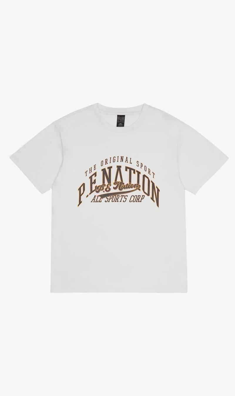 The P.E NATION A-Frame Tee in Illusion Blue is a classic piece with a fun and modern twist. Designed as a relaxed fit fashion tee, the A-Frame is cut from organic cotton and hemp blend fabrication, a sustainable vintage-style material that develops further character with considered wear and care. The Classic crew neck silhouette is matched with P.E Nation crackle-finish graphic print at centre front.