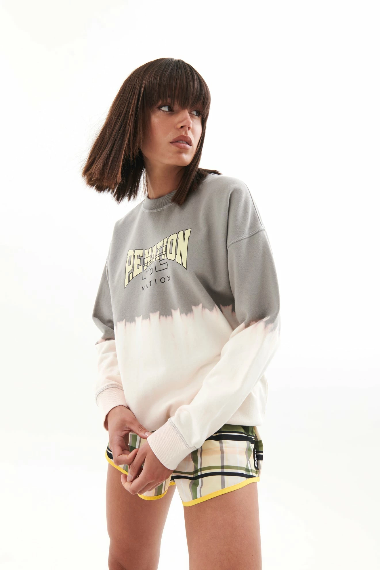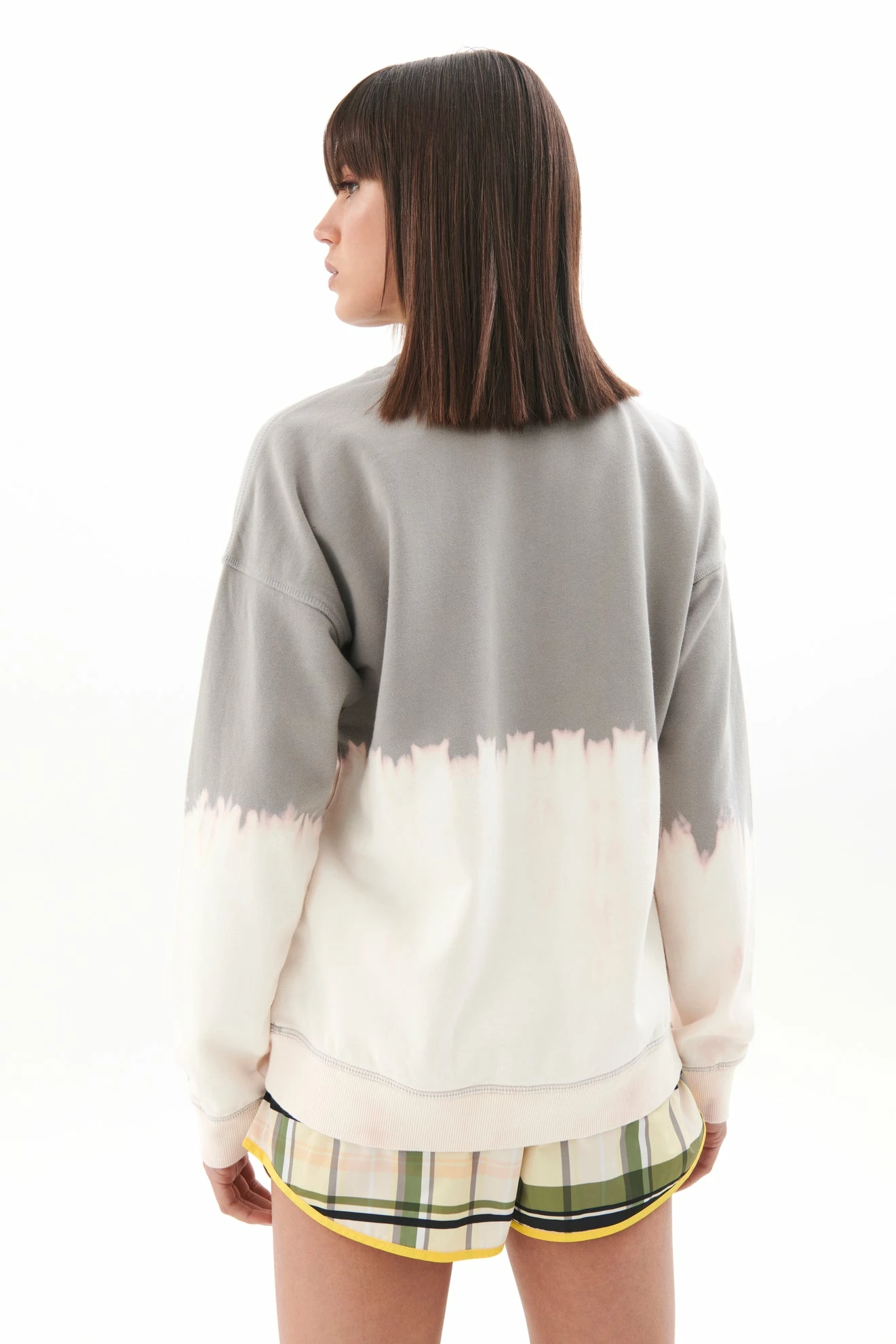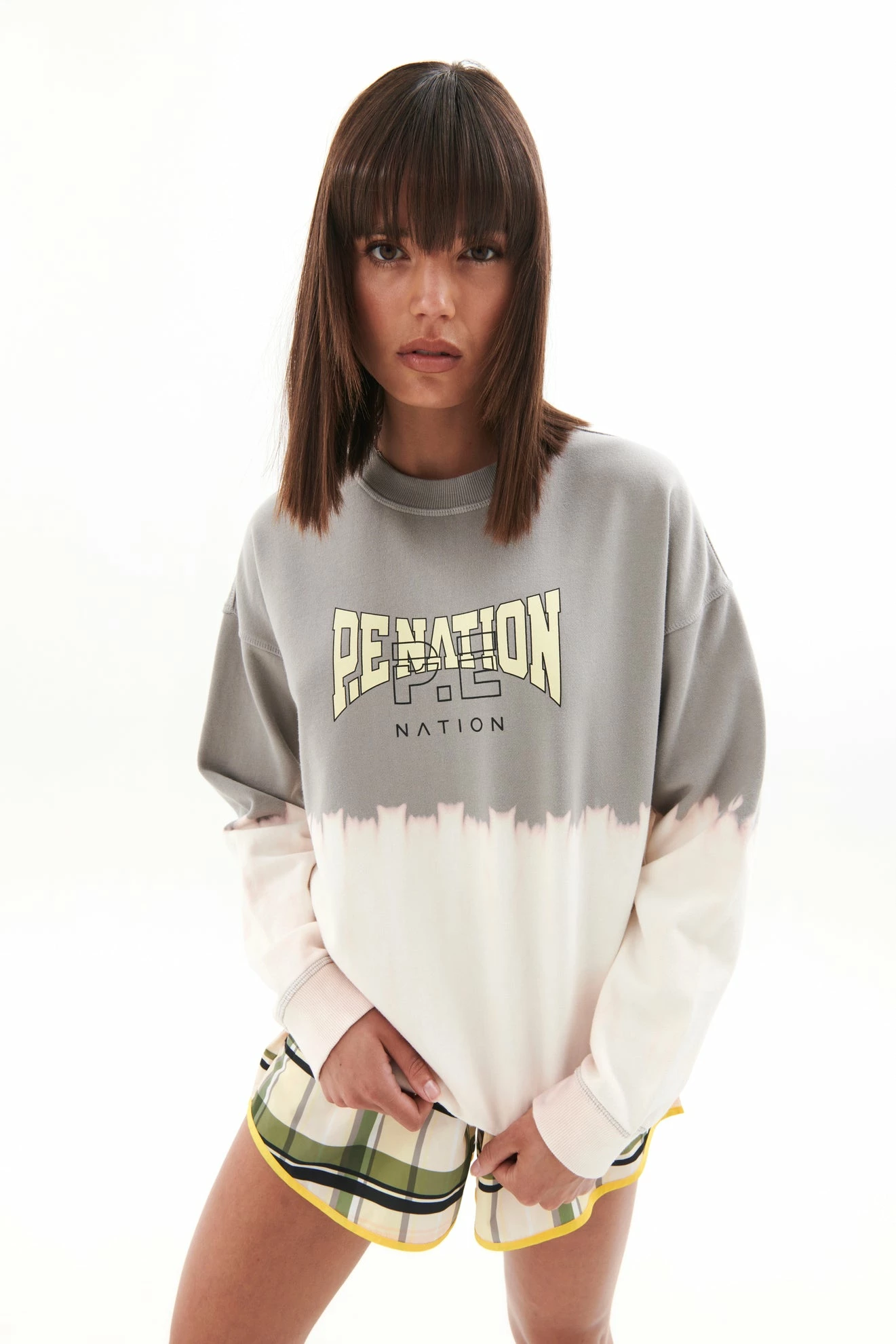 The Alternate Sweat in Opal Gray by PE Nation comes as part of the brands Ready, Set, Let’s Go Collection, designed to inspire sky-high energy, the pursuit of all passions, and an appreciation for the power of now and the endless possibilities hidden within the present time. A classic P.E Nation sweat with a relaxed fit, the Alternate features two-tone warm grey at the top matched with pastel tie-dye below. Lightweight organic cotton French terry is matched with a classic crew neck silhouette. P.E Nation’s double logo treatment at the centre front gives signature retro-sport detailing.Â