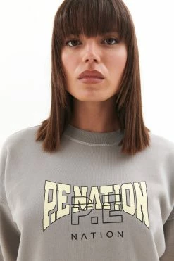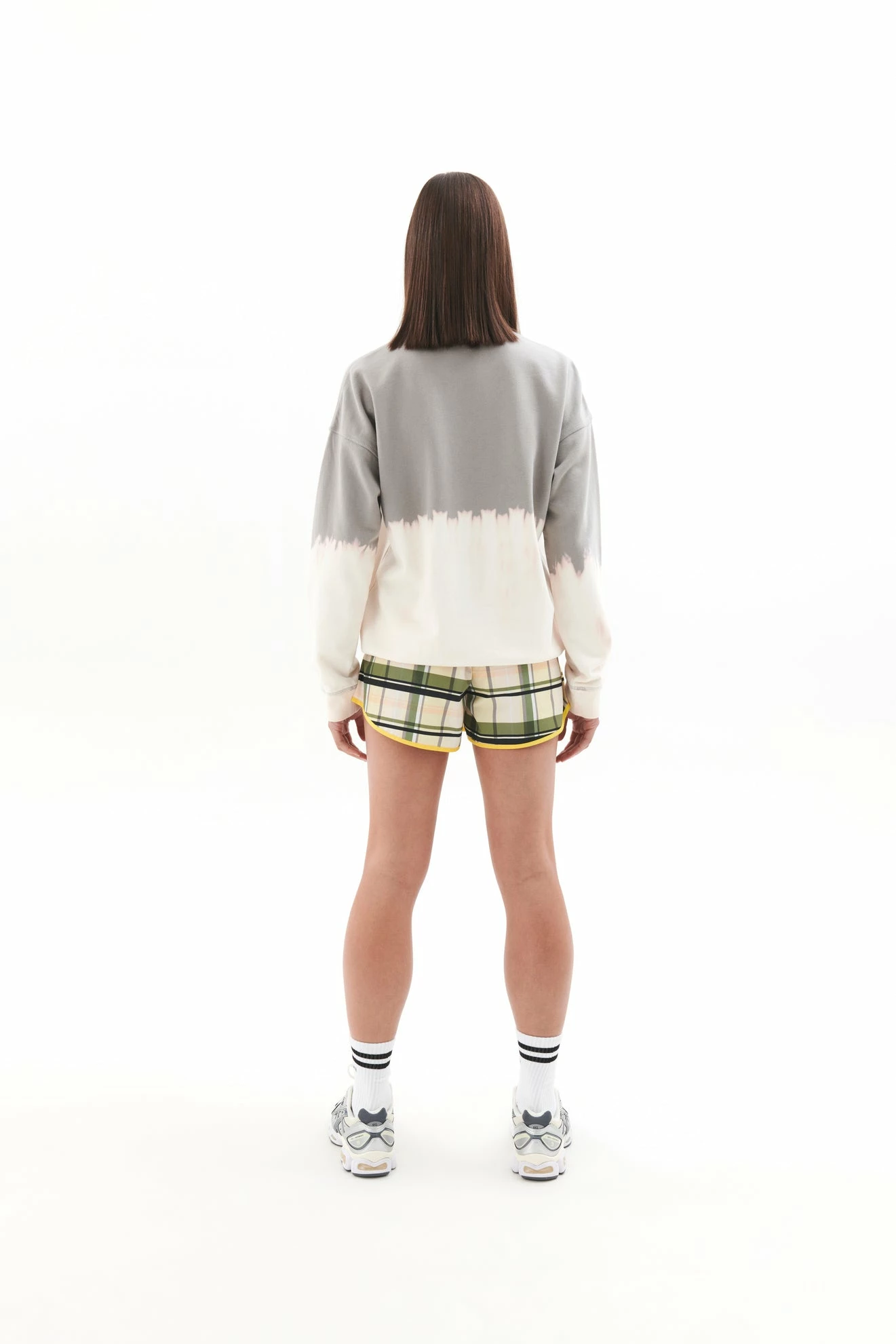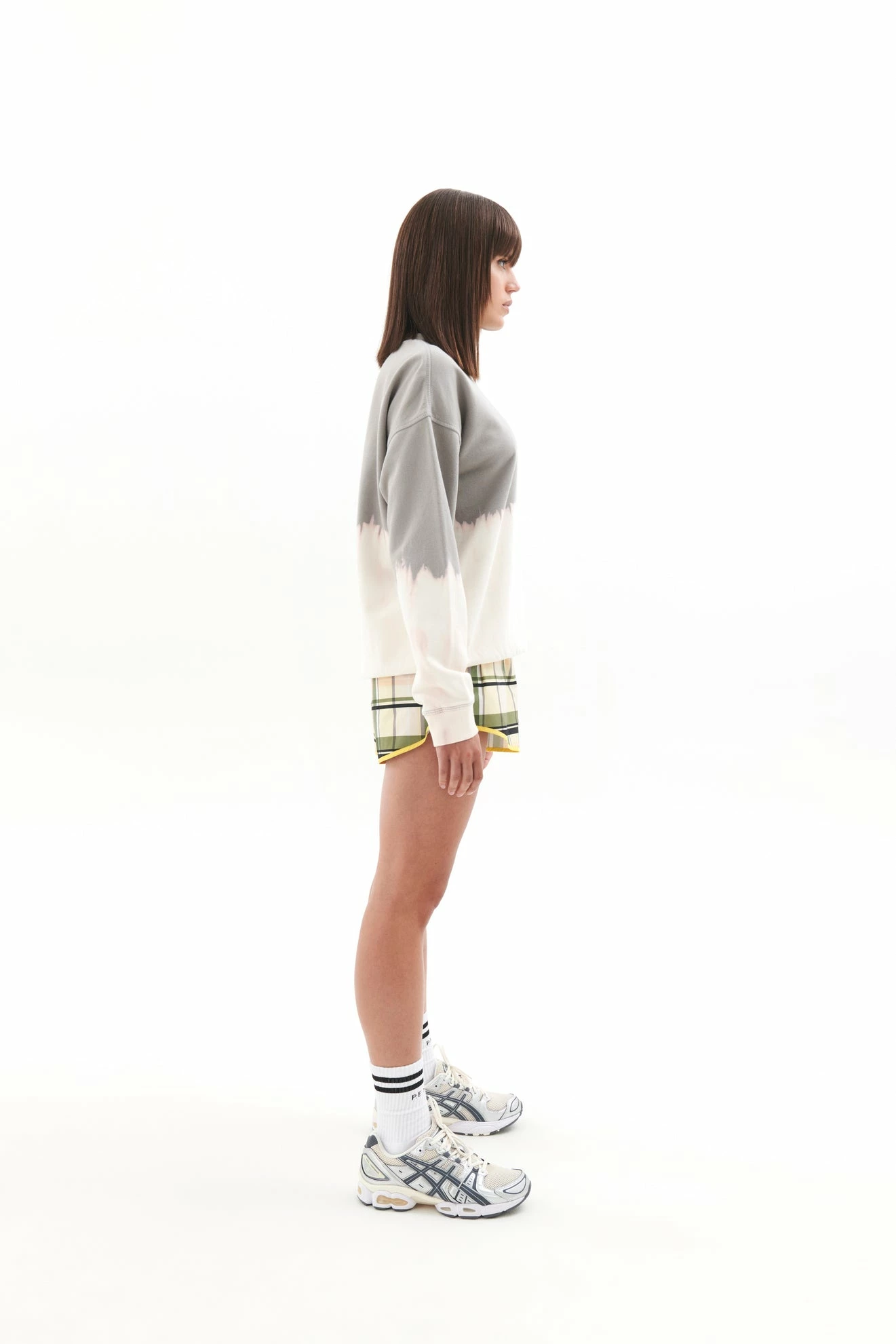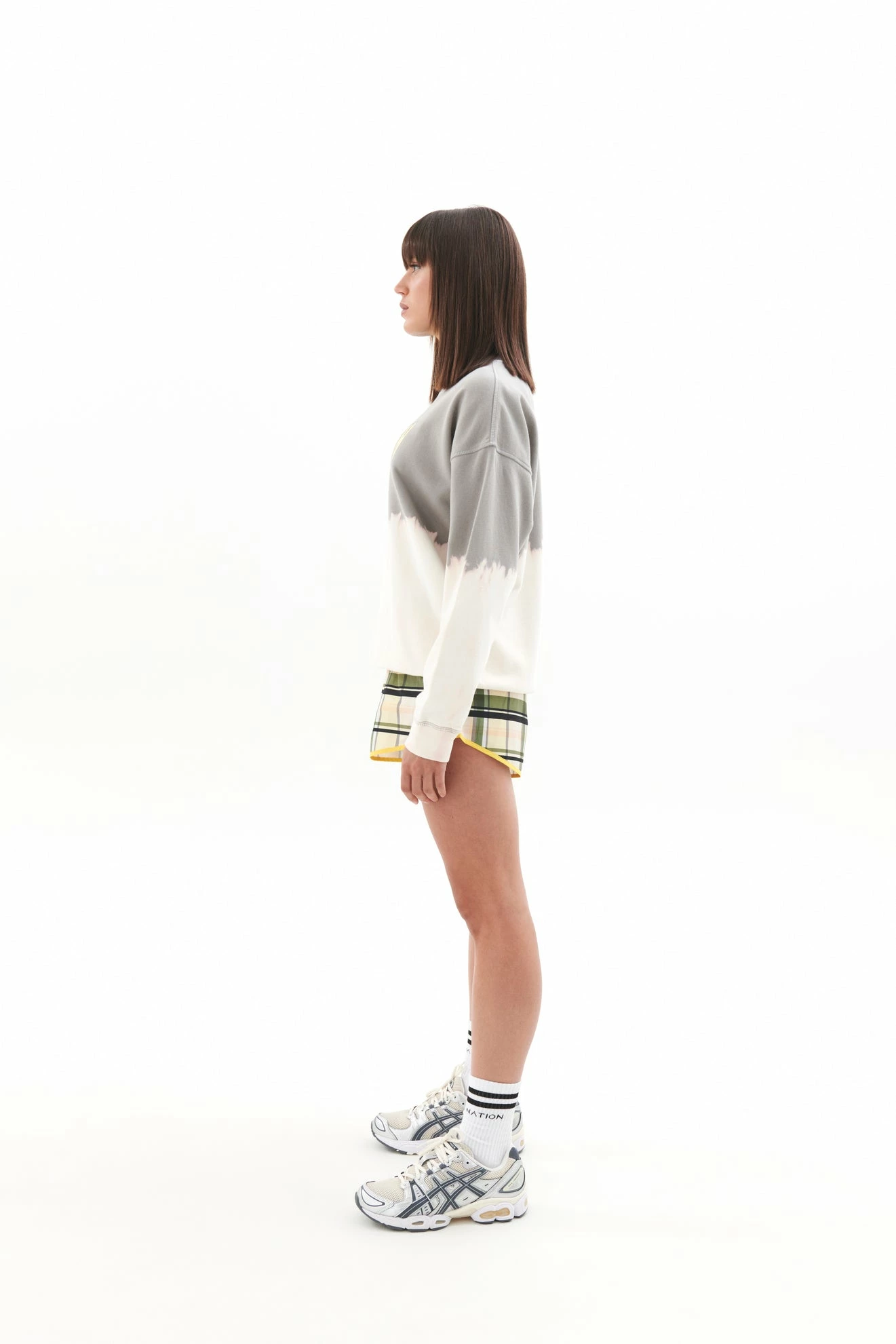 The Alternate Sweat in Opal Gray by PE Nation comes as part of the brands Ready, Set, Let’s Go Collection, designed to inspire sky-high energy, the pursuit of all passions, and an appreciation for the power of now and the endless possibilities hidden within the present time. A classic P.E Nation sweat with a relaxed fit, the Alternate features two-tone warm grey at the top matched with pastel tie-dye below. Lightweight organic cotton French terry is matched with a classic crew neck silhouette. P.E Nation’s double logo treatment at the centre front gives signature retro-sport detailing.Â