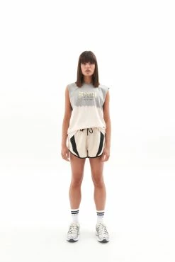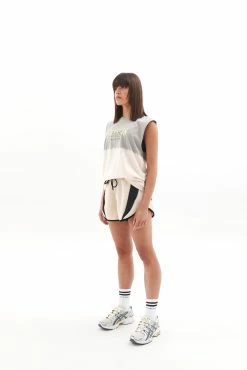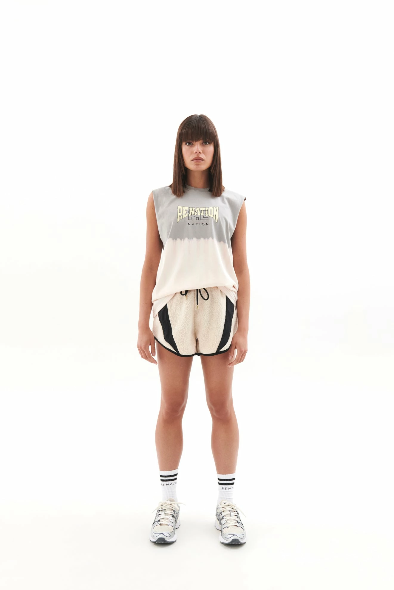 The Alternate Tank in Opal Gray by PE Nation comes as part of the brands Ready, Set, Let’s Go Collection, designed to inspire sky high energy, the pursuit of all passions, an appreciation for the power of now and the endless possibilities hidden within present time. A classic P.E Nation tank silhouette with relaxed fit, the Alternate features two-tone warm grey at top matched with pastel tie-dye below. Lightweight organic cotton makes it a breezy option for mid-summer moments and high intensity workouts. P.E Nation double logo treatment at centre front gives signature retro-sport detailing. Self bind crew neck is matched with raw cut armholes for true comfort and effortless styling.Â