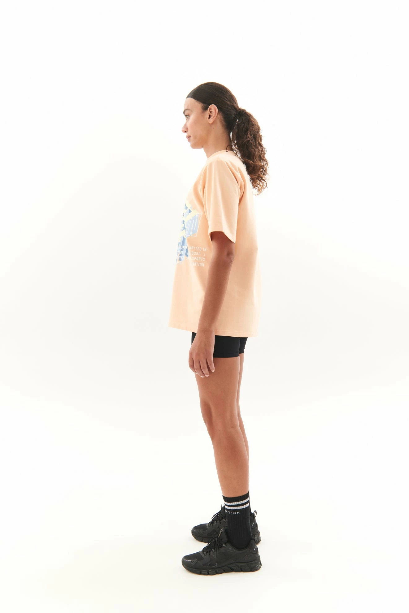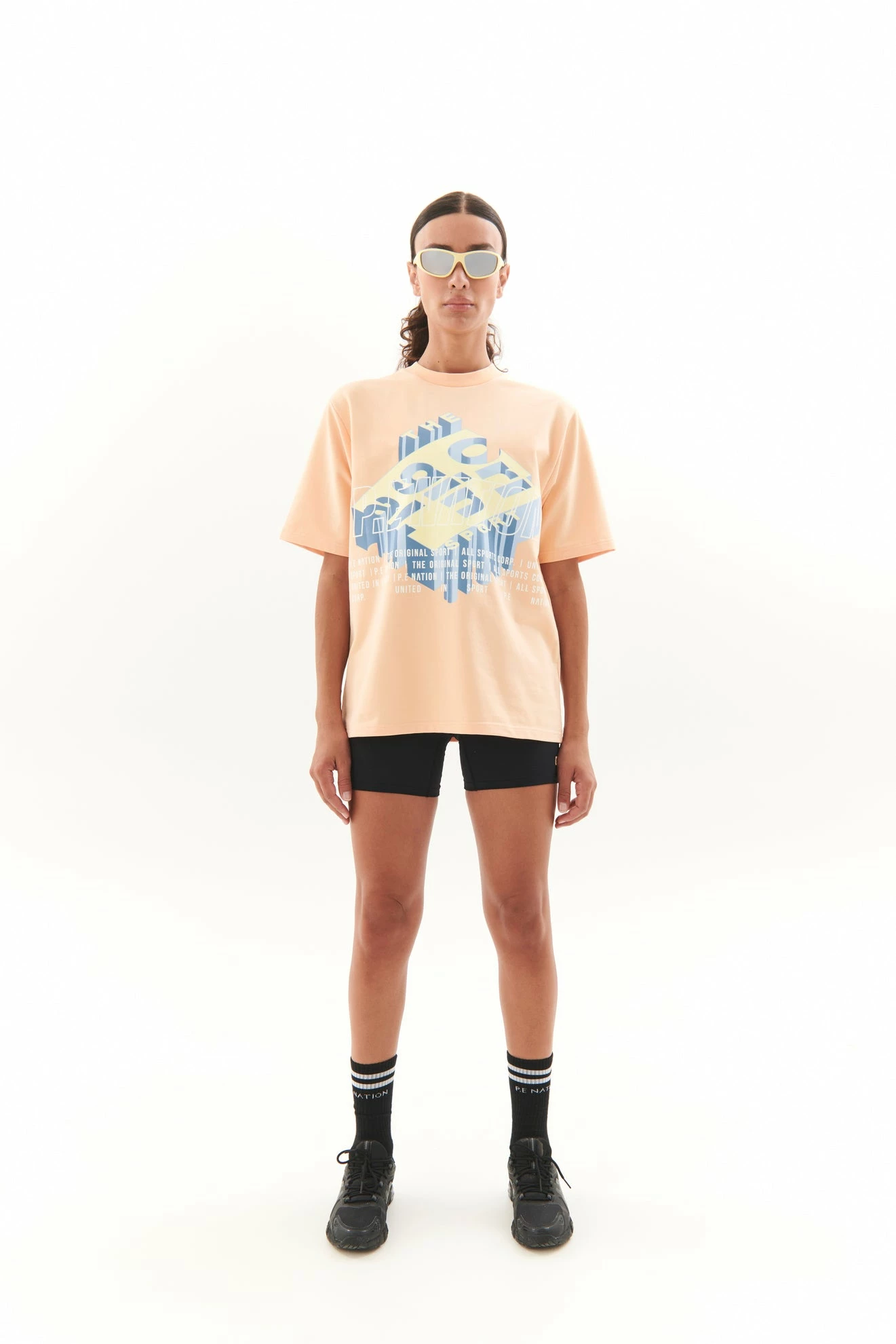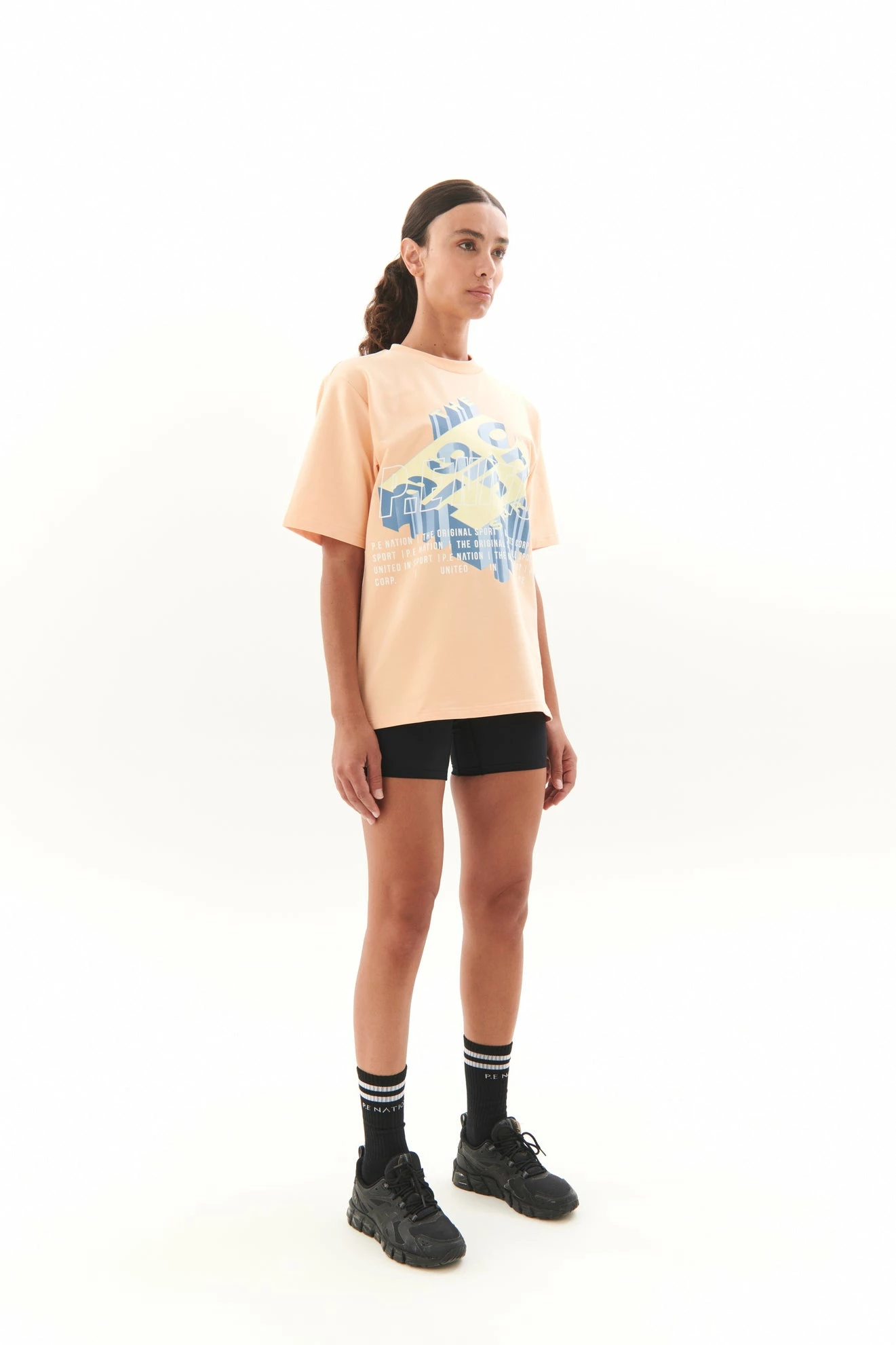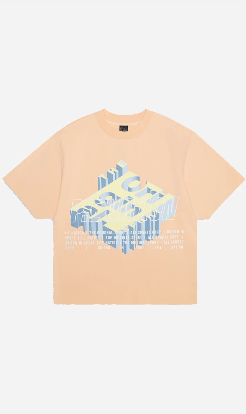 The Backspin Tee in Cream Blush by PE Nation comes as part of the brands Ready, Set, Let’s Go Collection, designed to inspire sky high energy, the pursuit of all passions, an appreciation for the power of now and the endless possibilities hidden within present time. An oversized statement streetwear tee, the Backspin is built from heavyweight 96% organic cotton, giving it supreme structure to maintain its premium silhouette. A warm peach all over tone proves the perfect base for the pastel pop P.E graphic that features centre-front. P.E logomania continues to evolve and elevate the everyday aesthetic, matching your vision and keeping in step with your self-expression.