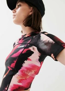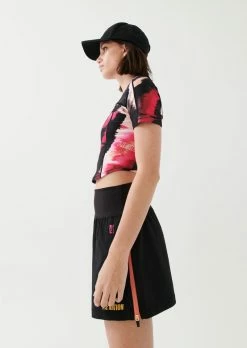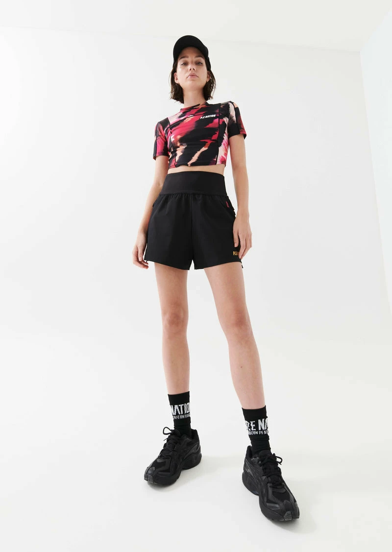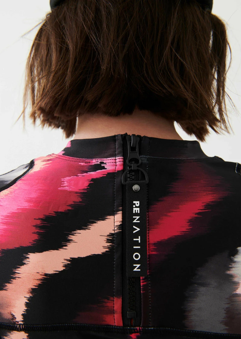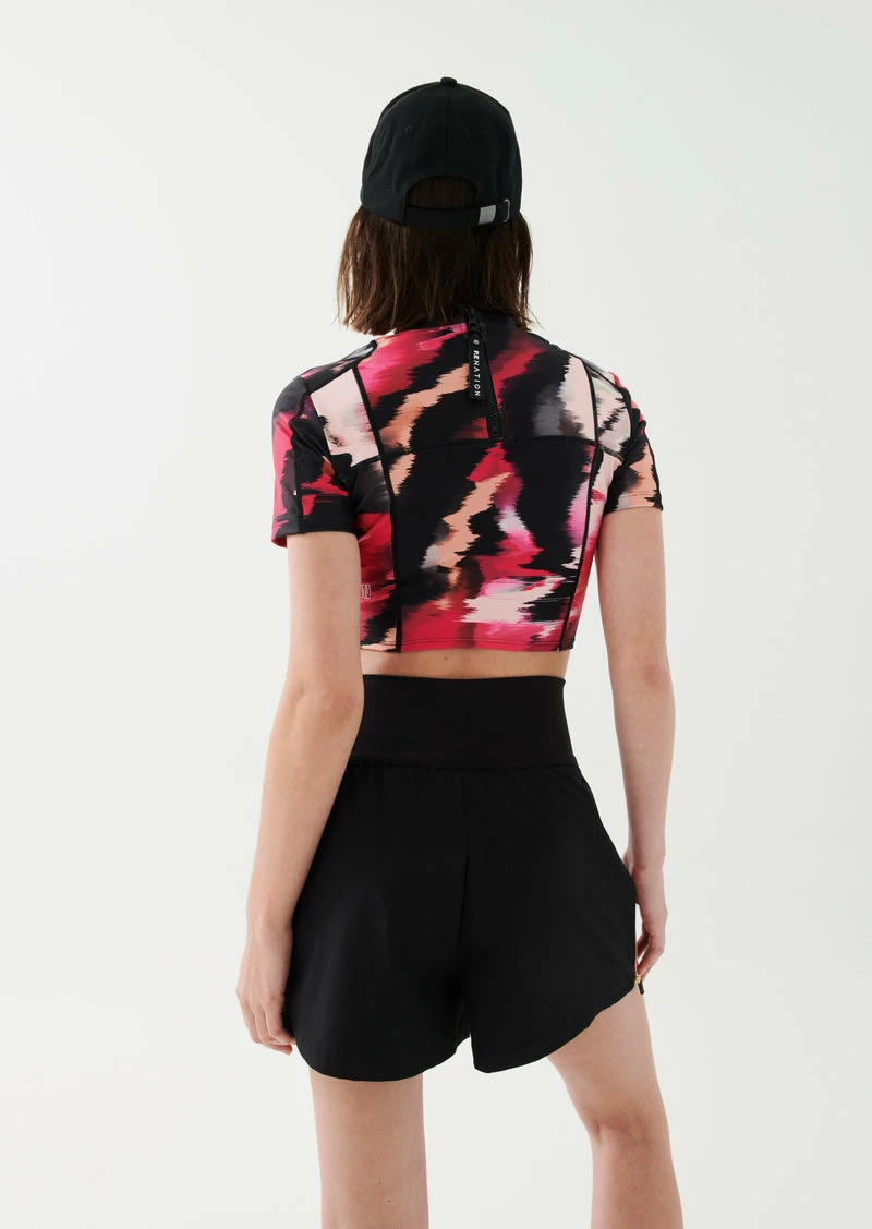 The P.E Nation Backswing Tee in Print comes as part of our It’s All In Me Collection. A fitted cropped active tee cut from our ultimate sustainable high-performance fabrication, this lightweight, flexible and breathable tee is built to withstand high-intensity training sessions, and designed with a custom digital multicolour print to look good everywhere. Featuring a high neckline with P.E Nation branded zipper on the back, the Backswing Tee features a neat fit and panel lines with coverstitching for a current look and comfortable feel. A P.E Nation logo on the chest and on the side panels elevate the overall appeal of this heightened essential.