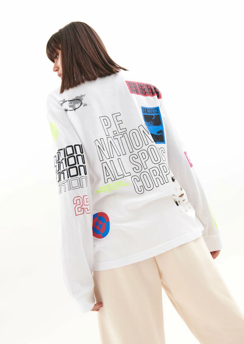 The Circuit LS Tee in Optic White by PE Nation comes as part of the brands Ready, Set, Let’s Go Collection, designed to inspire sky high energy, the pursuit of all passions, an appreciation for the power of now and the endless possibilities hidden within present time. A relaxed fit long sleeve tee cut from lightweight organic cotton jersey, the Circuit features all over custom P.E Nation graphics and logomania for a statement streetwear fit.Â