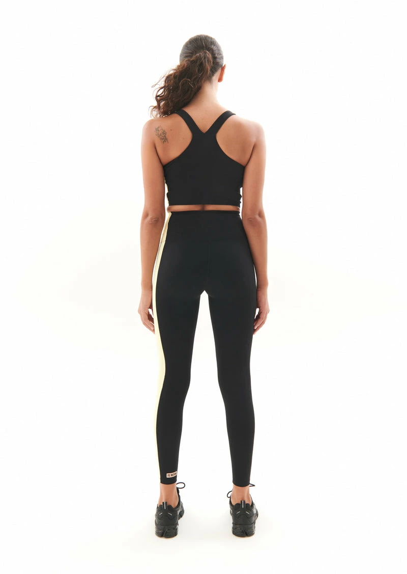 The Dedication Legging in Black by PE Nation comes as part of the brands Ready, Set, Let’s Go Collection, designed to inspire sky high energy, the pursuit of all passions, an appreciation for the power of now and the endless possibilities hidden within present time. A high rise full length active legging, the Dedication is designed for low to medium impact training sessions. With light compression, built in waistband support and quick dry matte fabrication, the Dedication features squatproof fabrication and a contrast pastel yellow vertical panel on the side. A P.E Nation logo patch sits at the ankle.Â