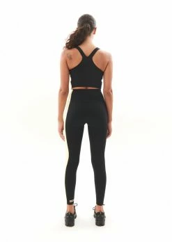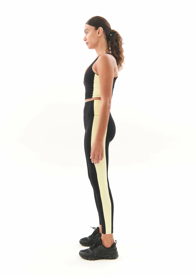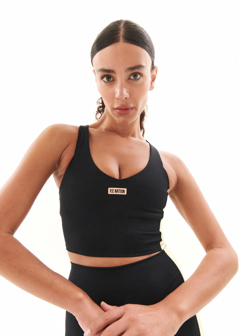 The Dedication Sports Bra in Black by PE Nation comes as part of the brands Ready, Set, Let’s Go Collection, designed to inspire sky high energy, the pursuit of all passions, an appreciation for the power of now and the endless possibilities hidden within present time. A longline active sports bra, the Dedication features tech matte fabrication with medium compression and built-in shelf bra for added support. V-neck at front is matched with V-neck at back. Contrast colour block panel at side for true P.E aesthetic, matched with a P.E Nation logo patch centre front.Â
