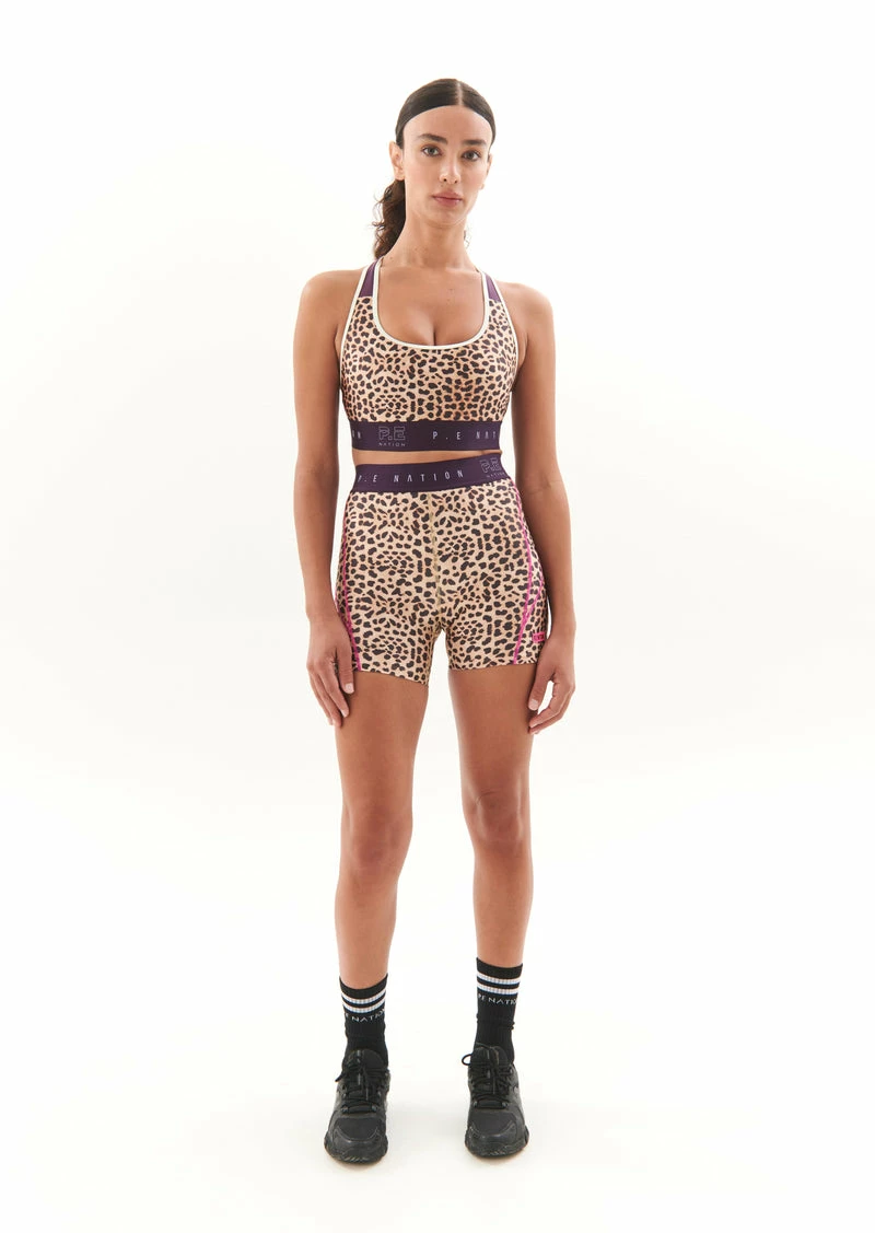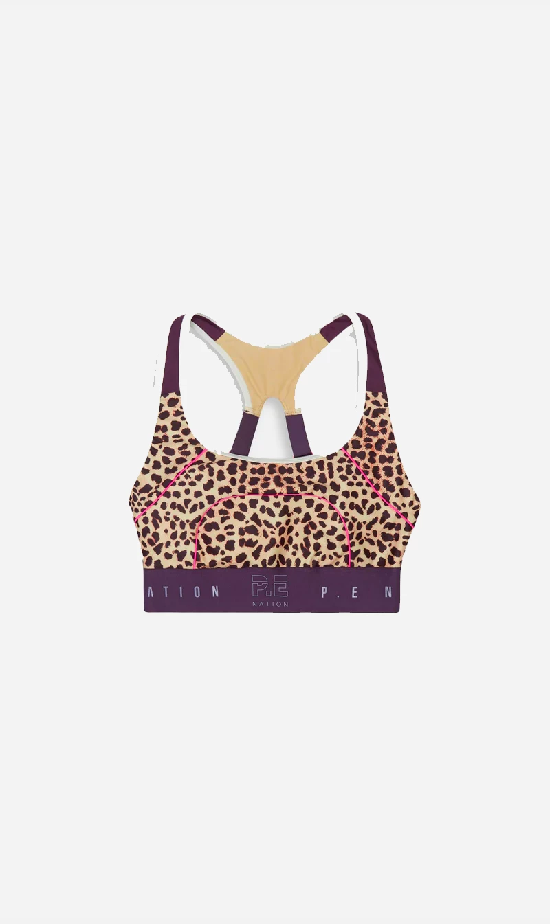 The Del Mar Sports Bra in Animal Print comes as part of PE Nations Ready, Set, Let’s Go Collection, designed to inspire sky high energy, the pursuit of all passions, an appreciation for the power of now and the endless possibilities hidden within present time. Built for everything from your dynamic movements to everyday flows, the Del Mar Sports Bra has been designed in a tech matte fabrication with an all over animal print. A racer back silhouette with adjustable straps allow you to customise your fit. With a P.E Nation branded elastic band under the bust and removable cups for support where you need it.Â