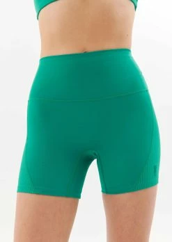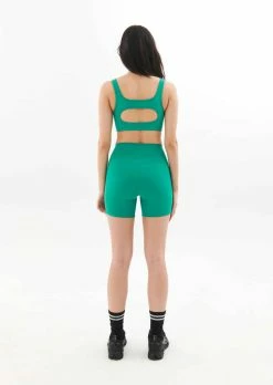 The Free Play Bike Short in Golf Green by PE Nation comes as part of the brands Ready, Set, Let’s Go Collection, designed to inspire sky high energy, the pursuit of all passions, an appreciation for the power of now and the endless possibilities hidden within present time. A lightweight squatproof premium active bike style short, the Free Play Bike Short is a 5” style with a matte finish. Premium stretch and recovery is teamed with dry-wicking sustainable fabrication made from post-consumer recycled plastic bottles. Curved soft active rib panelling on the sides combines function with fashion. Completed with a P.E Nation embroidered logo on the side of the leg.