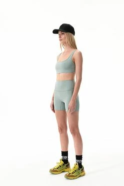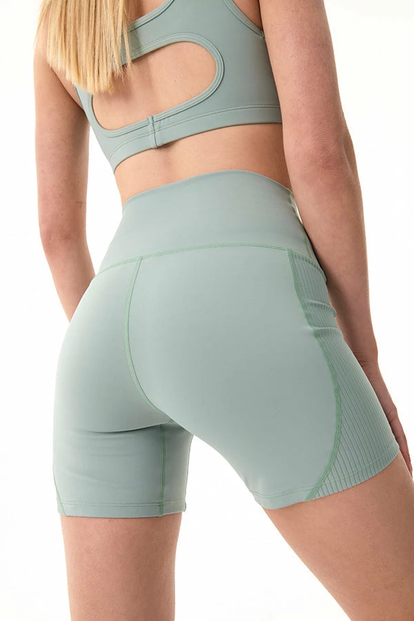 The P.E Nation Free Play Bike Short in Iceberg Green will add a fun pop of colour to your workout. Featuring a matte finish fabrication with curved active soft rib paneling gives the Free Play Bike Short a comfortable feel and flattering, elevated aesthetic. A lightweight squat-proof short with a 5” leg length, the Free Play Bike Short features premium stretch and recovery. Dry wick sustainable fabrication is made from post-consumer recycled plastic bottles.