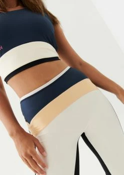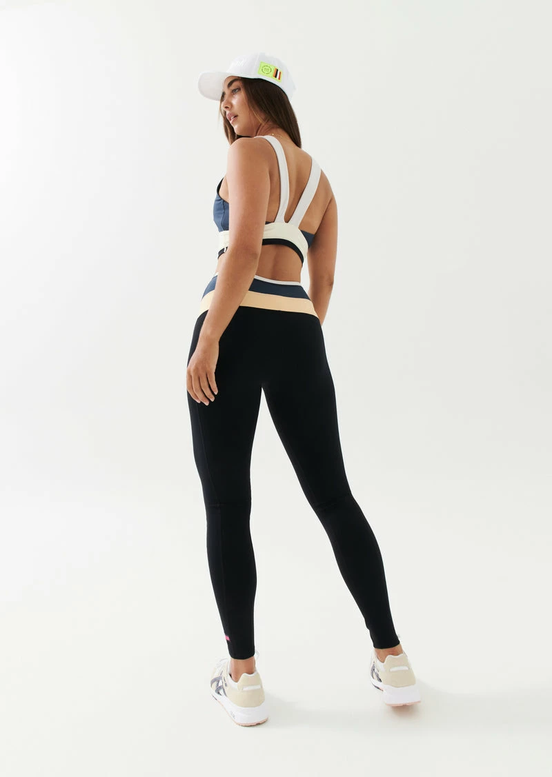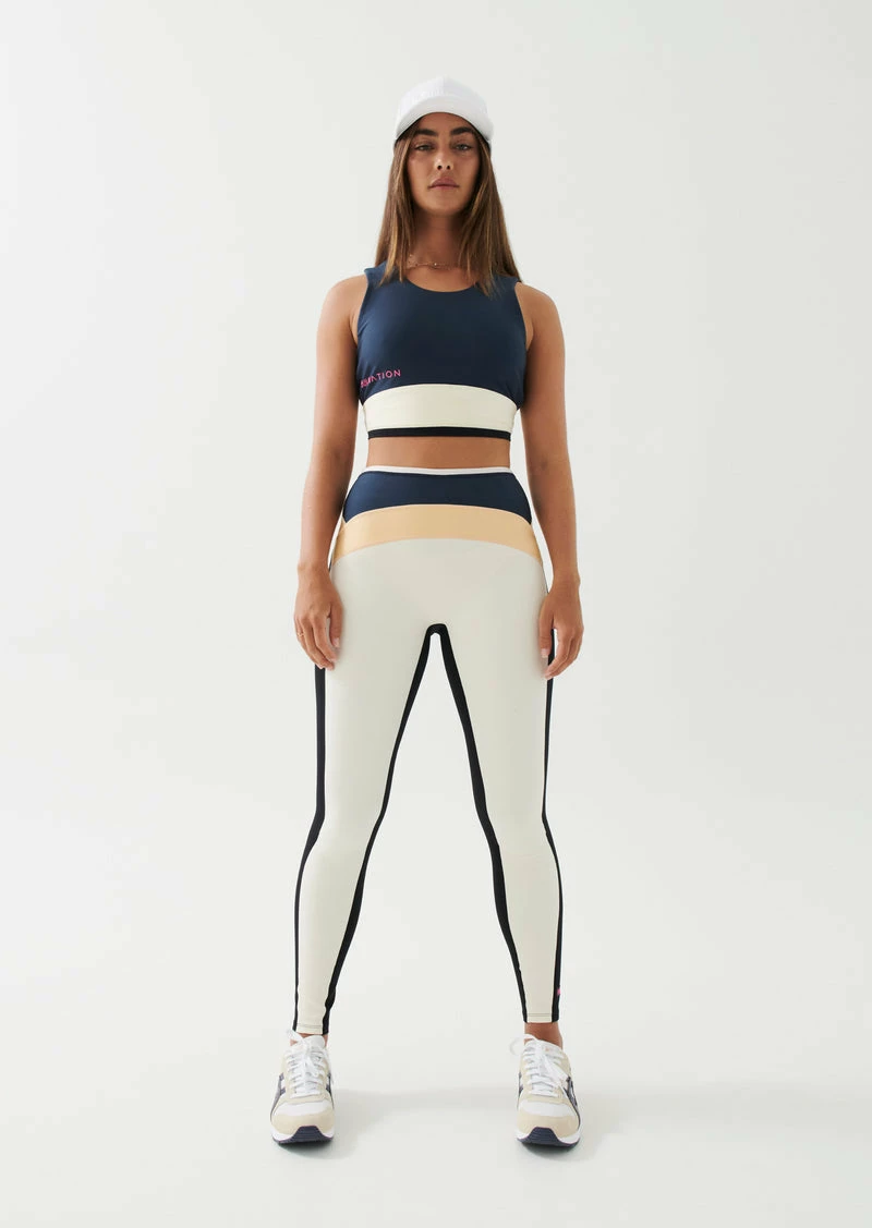 The P.E Nation Frontside Legging in White comes as part of the Reimagined Oasis Collection. A high-rise, full length active legging with contrast colour block panelling, the Frontside features warm winter white at front matched with warm fleece and midnight navy colour blocking at the waist, and squatproof black at back. Made from our premium diver-style fabrication, the Frontside has a silky soft hand feel and buttery soft texture, an instant elevation to your everyday wardrobe. Designed for low-impact activity and all-day comfort, the Frontside is complete with a P.E Nation logo badge at the ankle in contrast navy and fluro pink.