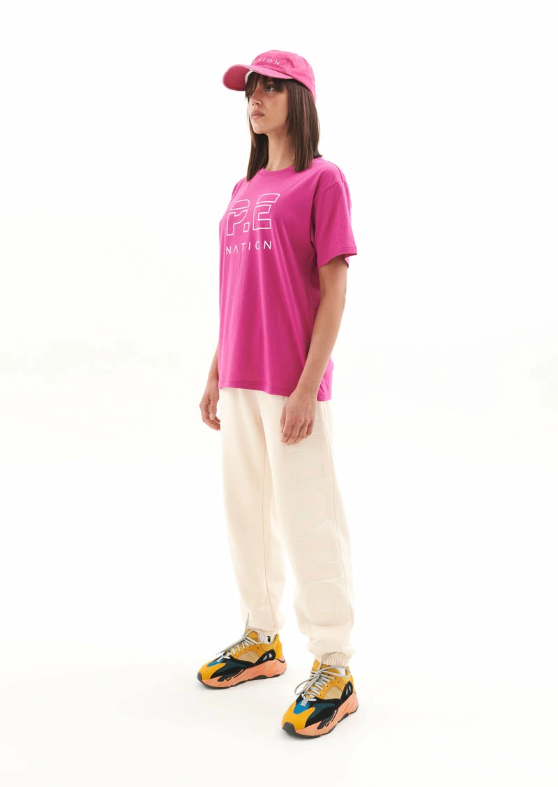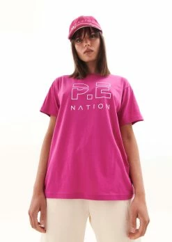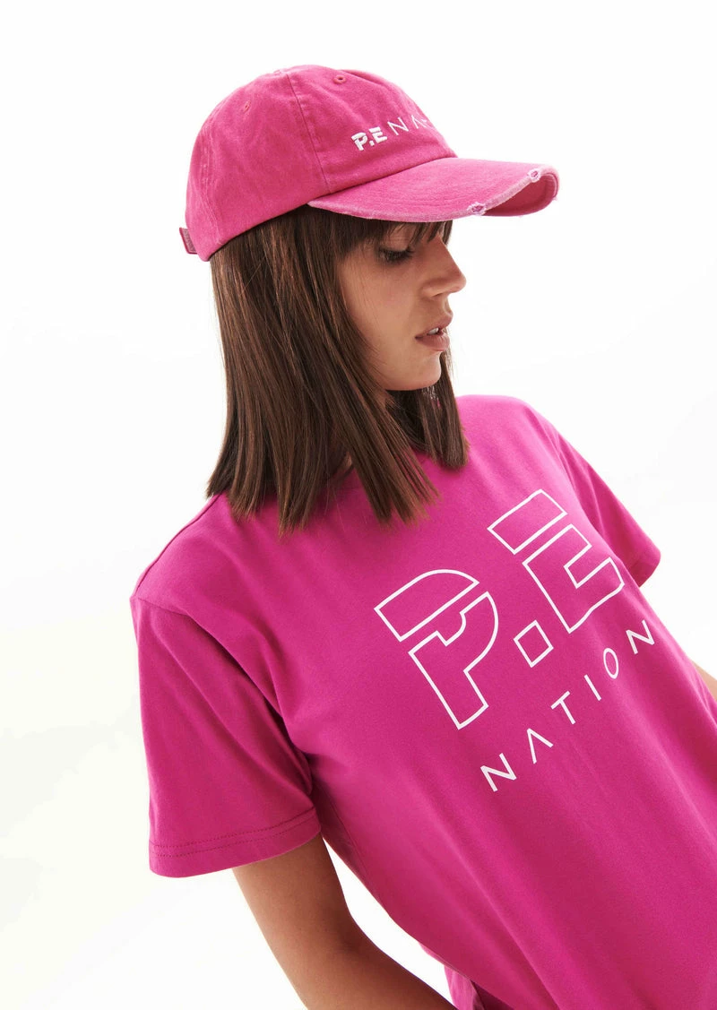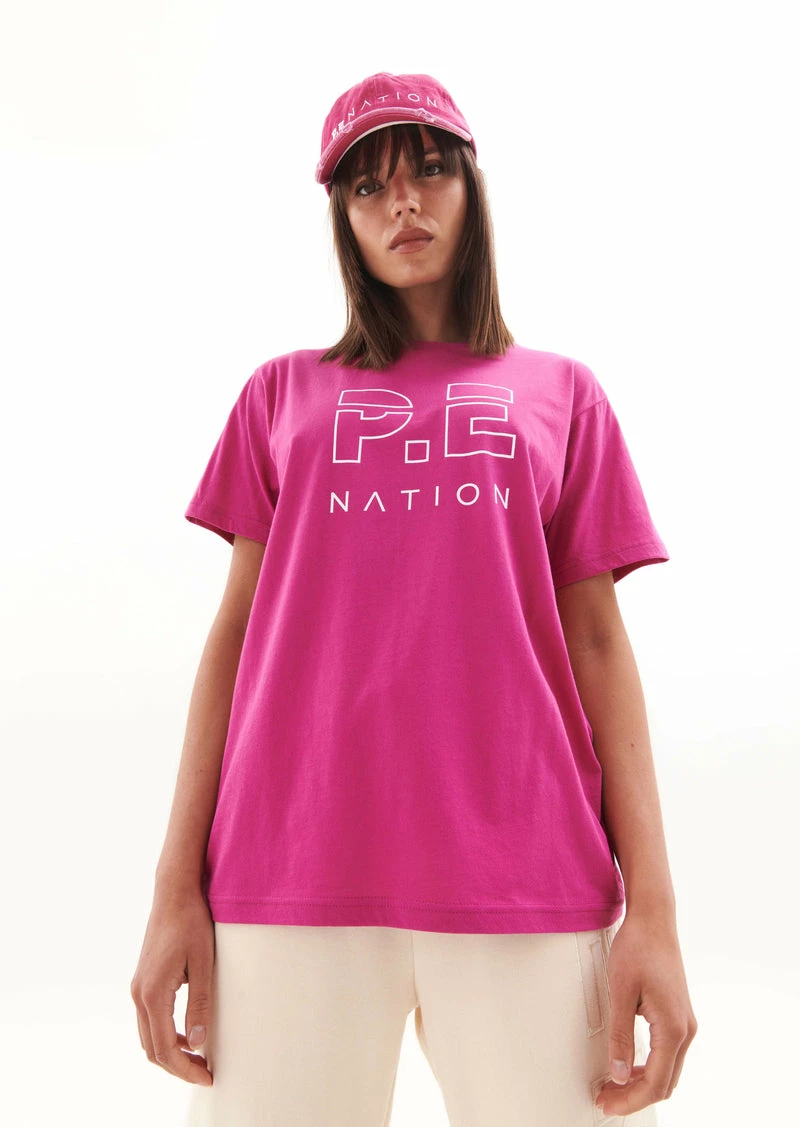 The Heads Up Tee in Raspberry Rose by PE Nation comes as part of the brands Ready, Set, Let’s Go Collection, designed to inspire sky high energy, the pursuit of all passions, an appreciation for the power of now and the endless possibilities hidden within present time. An everyday go-to, this heritage P.E Nation tee can be worn in a multitude of ways; a perfect addition to everyday and active fits. A classic crew neck silhouette, available in extended sizing, the Heads Up Tee is cut from ultra-soft lightweight sustainable 100% organic cotton, with a contrast P.E Nation logo print centre front. Work it into your day-to-day looks with favourites from your P.E collection.