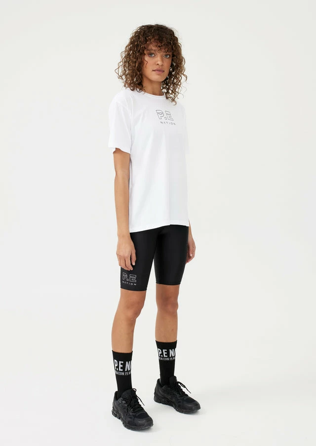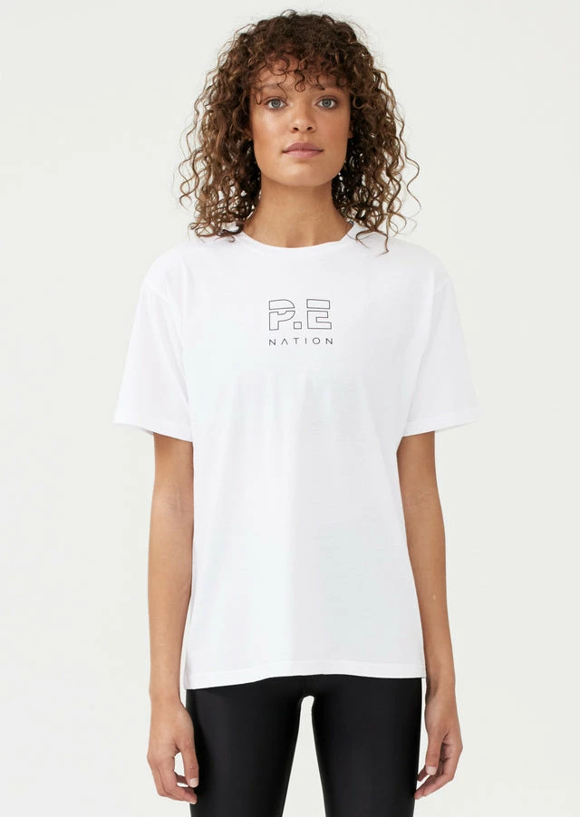 The Heads Up Tee in White comes as part of the P.E Baseline Collection. An everyday go-to, this signature basic P.E Nation tee can be worn in a multitude of ways; an ideal addition to your everyday and activewear wardrobe. A classic crew-neck tee, available in extended sizing, made from ulta-soft lightweight sustainable fabrication, with a contrast P.E Nation logo print and P.E Nation heat press flag on the back. Work it into your everyday athleisure look with favourites from your P.E Nation collection.