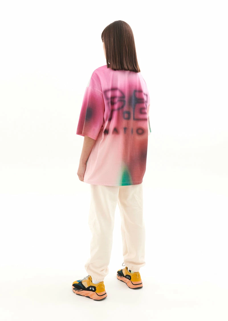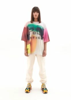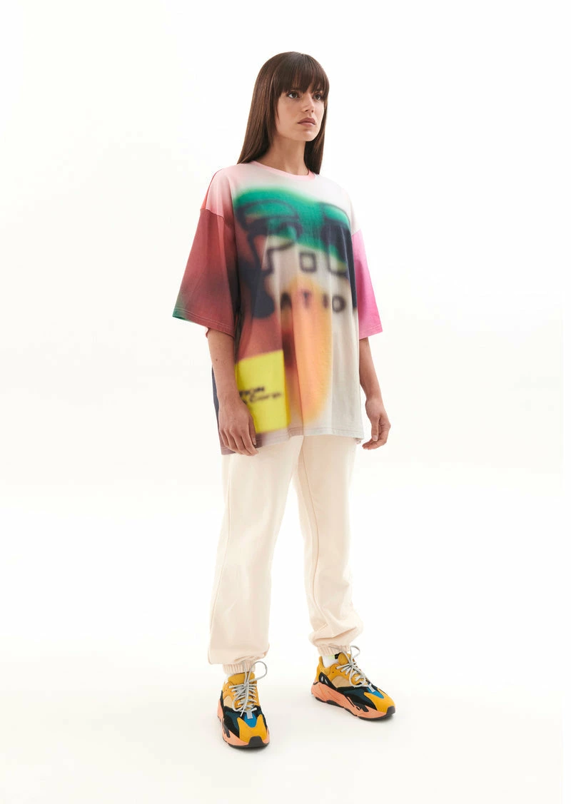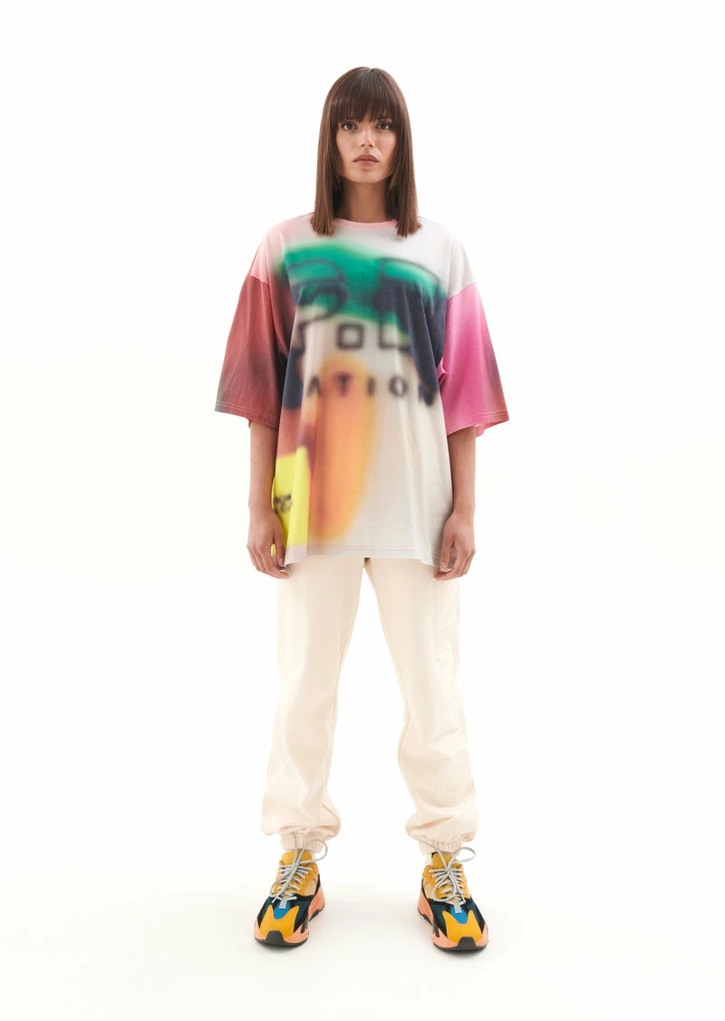 The Immersion Tee in Blur Multi Print by PE Nation comes as part of the brands Ready, Set, Let’s Go Collection, designed to inspire sky high energy, the pursuit of all passions, an appreciation for the power of now and the endless possibilities hidden within present time. Crafted from 100% organic cotton, the Immersion Tee features an oversized fit for an all day streetstyle go to. Soft lightweight feel is matched with classic crew neck silhouette and all over custom digital blur print.Â