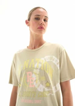 The P.E Nation Initialise tee in Gravel is perfect for relaxing, on the go and everything in between. Designed as a relaxed fit fashion tee cut from lightweight organic cotton jersey, the Initialise Tee features a signature P.E Nation graphic print at the front, teamed with custom all-over digital tie-dye.