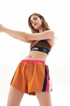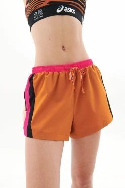 The Sequence Short in Golden Oak by PE Nation comes as part of the brand’s hotly anticipated P.E Nation x ASICS Collection. A true retro-sport capsule, blending custom P.E colourways and hypnotic wave print across athletic and everyday wear. Inspired by yesterday. Engineered for all of tomorrow. Informed by retro track-and-field wear, the Sequence Short features a nostalgic colourway exclusive to the collaboration. A relaxed fit running short, the Sequence is made from lightweight fast-dry spray fabrication. Built-in power mesh internal brief provides comfort and breathability on the move. Asymmetrical colour block panels bring Fluro hits blended with classic neutrals. Elasticated waistband features functional P.E Nation flag drawcord with Asics branding. Side zip pockets provide hands-free holding space for lightweight essentials. P.E Nation and Asics logo detailing included at the hem.Â