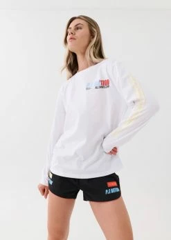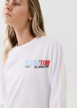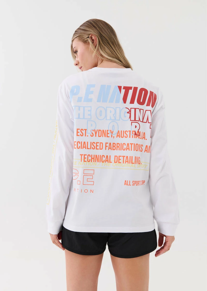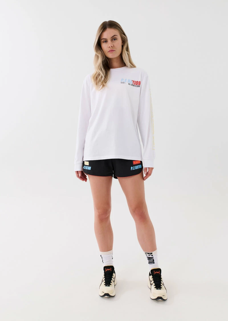 The PE Nation Electrify LS Tee in Optic White comes as part of the brands Ready. To Wear Collection, created for who you are. Engineered for what you do. A relaxed fit long-sleeve tee that will quickly become your street-sport essential. The Electrify LS Tee is cut from 100% organic cotton to deliver a lightweight layer ideal for pre and post-training days. Featuring classic P.E Nation logomania graphics throughout, on the back and along the length of the sleeve.Â