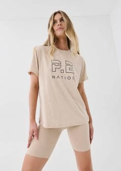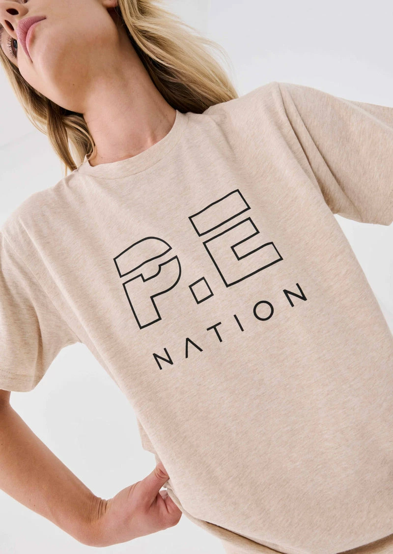The PE Nation Heads Up Tee in Warm Grey Marl comes as part of the brands Ready. To Wear Collection, created for who you are. Engineered for what you do. An everyday go-to, this heritage P.E Nation tee can be worn in a multitude of ways; a perfect addition to everyday and active fits. A classic crew neck silhouette, available in extended sizing, the Heads Up Tee is cut from ultra-soft lightweight sustainable fabrication, with a contrast P.E Nation logo print centre front. Work it into your day to day looks with favourites from your P.E collection. Team it up with the Shozo Legging, Reframe Bike Short, Rewind Bike Short and Reformer Legging from this collection.