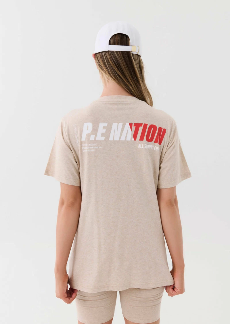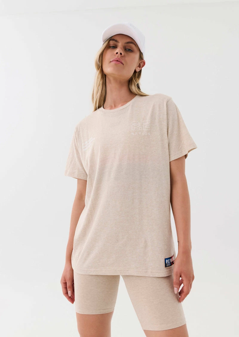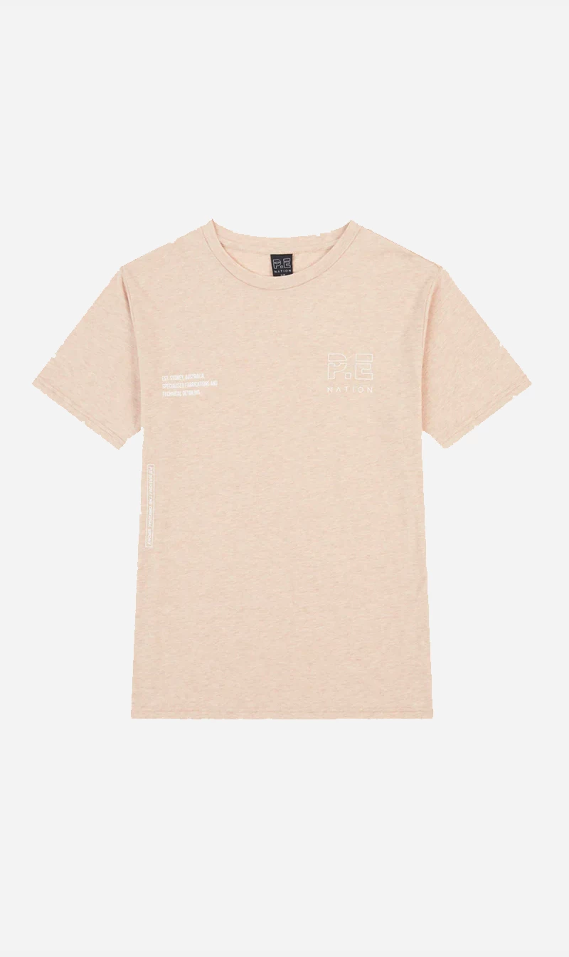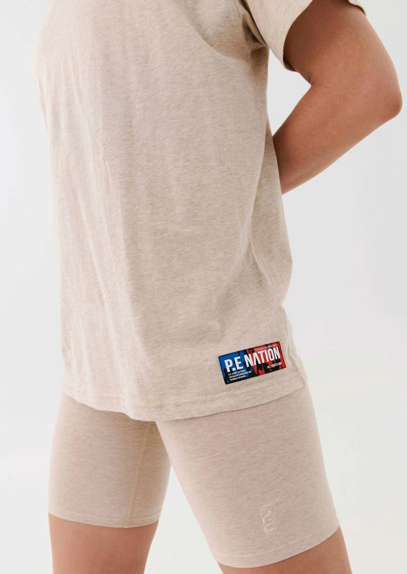 The PE Nation Initiate Tee in Warm Grey Marl comes as part of the brands Ready. To Wear Collection, created for who you are. Engineered for what you do. A classic P.E Nation relaxed fit crew neck tee, the Initiate is cut from hyper-lightweight 100% organic cotton for the ultimate streetwear layer and before-and-after training essential. Featuring loose fit sleeves with drop shoulder, the Initiate Tee has multi-placement logo detailing at front and a large multi-tone P.E Nation logo across the back. Team it up with the Reframe Bike Short, Rewind Bike Short, Shozo Legging, Initiate Trackpant and Forefront Legging.