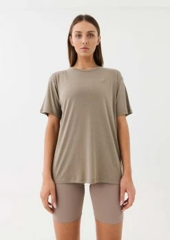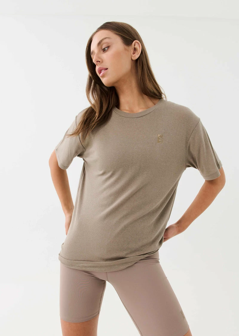 The PE Nation Primary Tee in Silver Mink comes as part of the brands Ready. To Wear Collection, created for who you are. Engineered for what you do. A relaxed fit semi-sheer layer with a hyper lightweight and flowy feel, the Primary Tee features a classic crew neck and easy wear drop shoulder to style tucked into denim and tailored pants or layer over active studiowear before and after training sessions. With an elevated texture, silhouette and full block colour for ease of styling, the Primary Tee is finished with a ton-sur-ton embroidered P.E Nation logo at front.Â