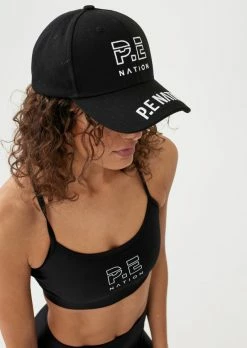 The Stadium Sports Bra in Black comes as a part of the P.E Baseline Collection. With a scoop neckline at front and racerback detail at back, the Stadium Sports Bra is a functional staple perfect for all training intensities, with adjustable shoulder straps to secure the fit. An encased elastic under bust provides added support on the go, while a P.E Nation logo at front and flag at back give it an elevated appeal.