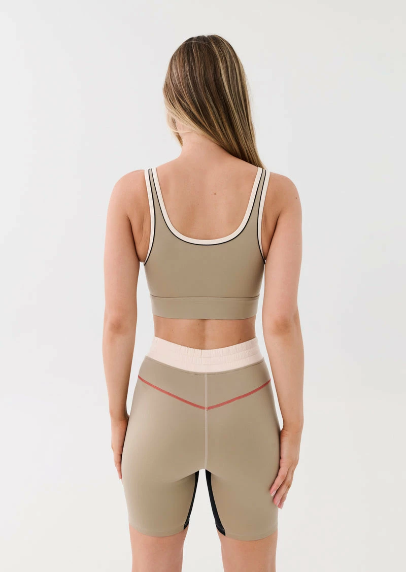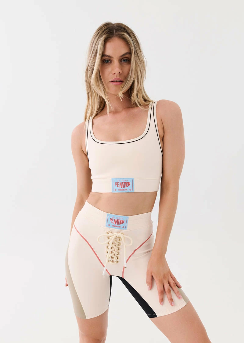 The PE Nation Undefeated Sports Bra in Pearled Ivory comes as part of our Ready. To Wear Collection, created for who you are. Engineered for what you do. A hyper soft crop top and sports bra that will take you through your flows and your day. With a scoop neckline at the front and back, it’s buttery soft scuba-style fabrication is broken up into two tonal panels at the front and back. Complimented by a black piping around the edges and finished with a boxing style P.E stitched logo on the front. With an elasticated band under the bust for extra support for your everyday movements.