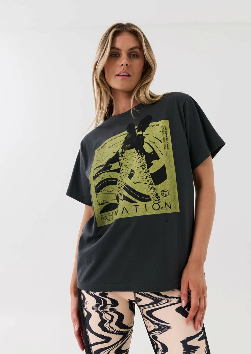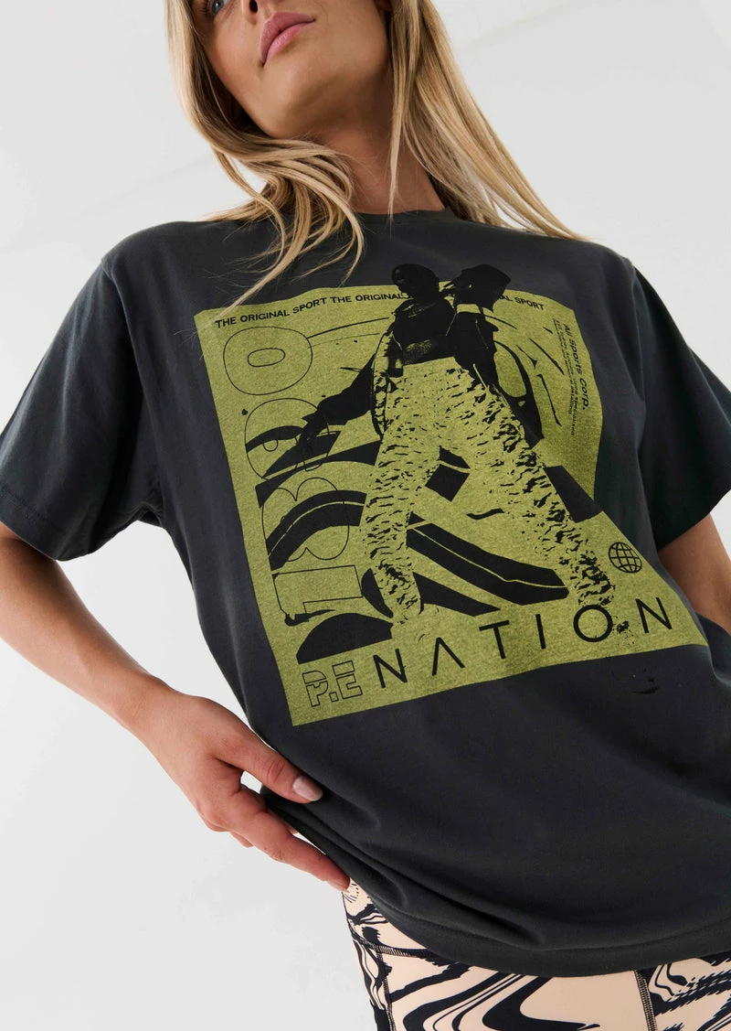 The PE Nation Uptempo Tee in Dark Shadow comes as part of our Ready. To Wear Collection, created for who you are. Engineered for what you do. An everyday go-to, this relaxed fit crew neck is cut in 100% organic cotton for a lightweight tee that is better for people, better for the planet. This classic staple is brought to life by a P.E Nation logomania digital print on the centre front and back.Â