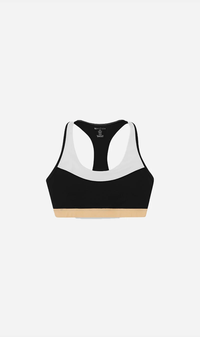 The Progression Sports Bra in Black by PE Nation comes as part of the brands Ready, Set, Let’s Go Collection, designed to inspire sky-high energy, the pursuit of all passions, and an appreciation for the power of now and the endless possibilities hidden within the present time. An active sports bra designed for low to medium-impact training and workouts, the Progression Sports Bra features a scoop neckline at the front and mesh pocket detail at back, with an elasticated E-hook clasp at the back waistband to secure the fit. Cut from a recycled tech matte fabric with light compression and quick-dry capacity, the Progression provides the ultimate light support while you sweat.Â