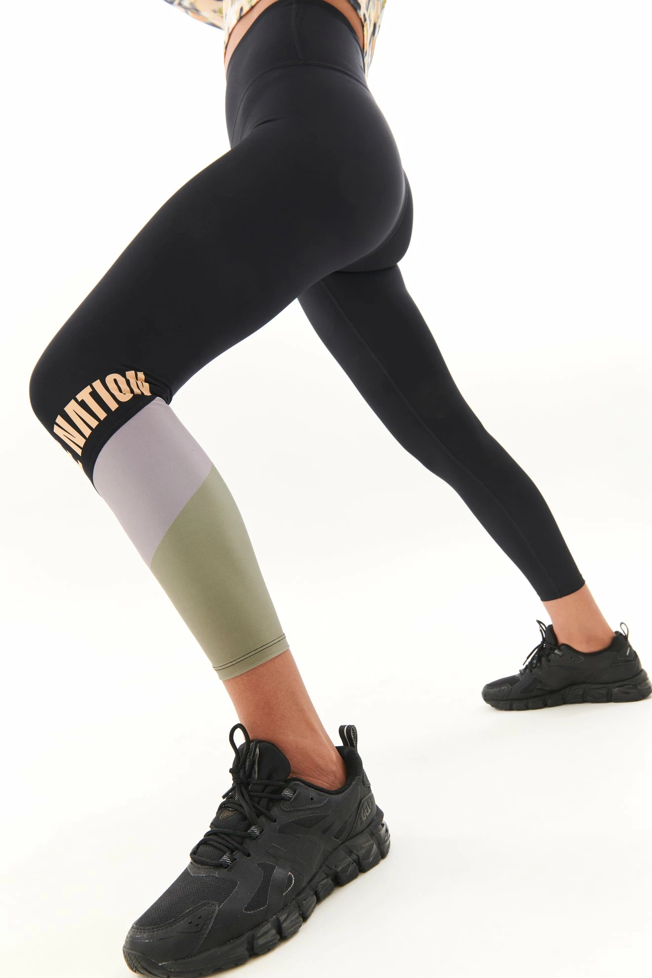 The Reaction Legging in Black by PE Nation comes as part of the brand’s Ready, Set, Let’s Go Collection, designed to inspire sky-high energy, the pursuit of all passions, an appreciation for the power of now and the endless possibilities hidden within the present time. A high rise 7/8 length active leg, the Reaction features built-in waistband support and light compression for low to medium-intensity training. Quick-dry sustainable fabric features a matte appearance and a squat-proof finish. Signature colour block detail on the left leg includes the P.E Nation logo detail.Â