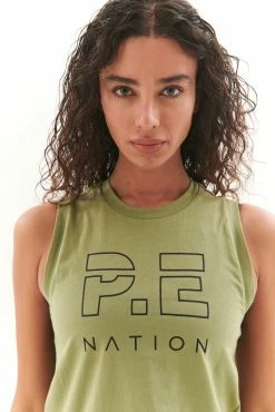 The Shuffle Tank in Sage by PE Nation comes as part of the brands Ready, Set, Let’s Go Collection, designed to inspire sky high energy, the pursuit of all passions, an appreciation for the power of now and the endless possibilities in present time. A classic P.E tank cut from luxuriously soft 100% organic cotton, the Shuffle Tank is a modern everyday staple fit for a multi-faceted life. With comfortable binding at the neck and arms, and a raw cut hem, this off-duty essential features a P.E Nation logo centre front.