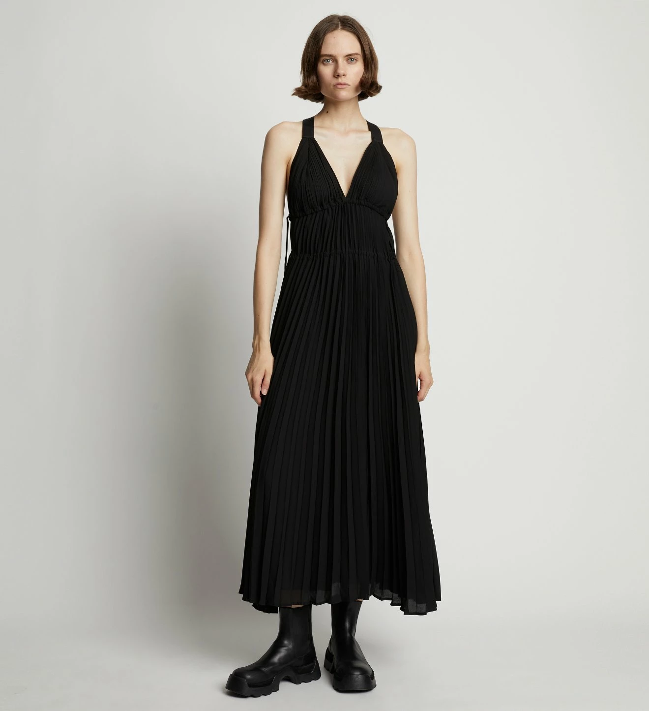 The Broomstick Pleated Tank Dress by Proenza Schouler White Label is beautifully elegant and perfect for multiple occasions. Cut to a fluid, plissé design, this dress features ruching across the bust and waist and extended self-tie drawstrings at the sides. With a flattering V-neck and crossover straps at the back, pair this understated dress with a simple slide, or white sneakers for daytime chic.