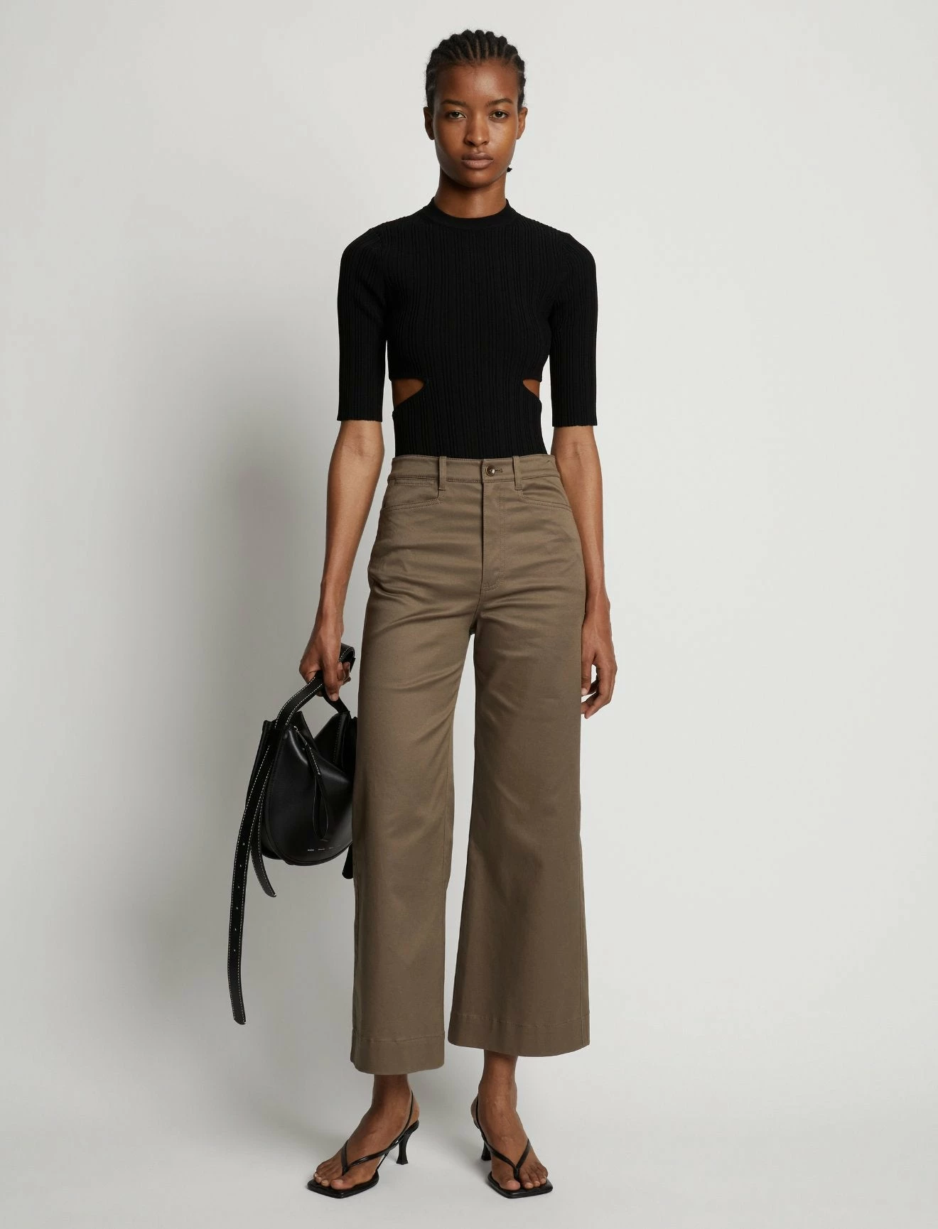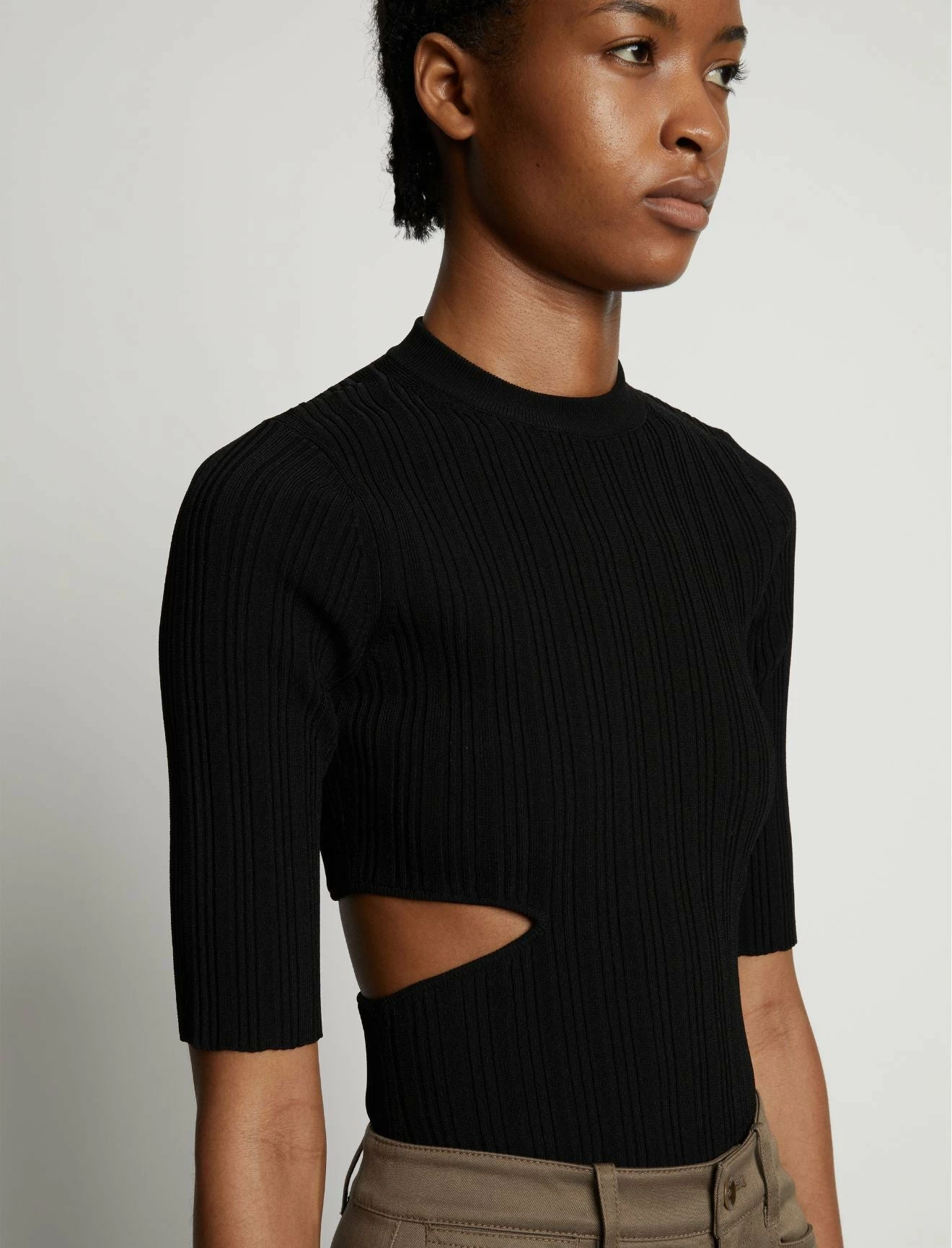 A piece to lift any outfit from denim to tailored black pants, the Rib Knit Cut Out Sweater by Proenza Schouler White Label is cut to a slim fit with a back cut-out that extends to the sides. With an elegant raised crew neck, this sweater is one for all seasons.Â