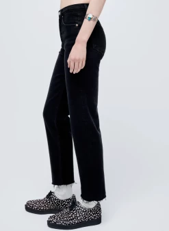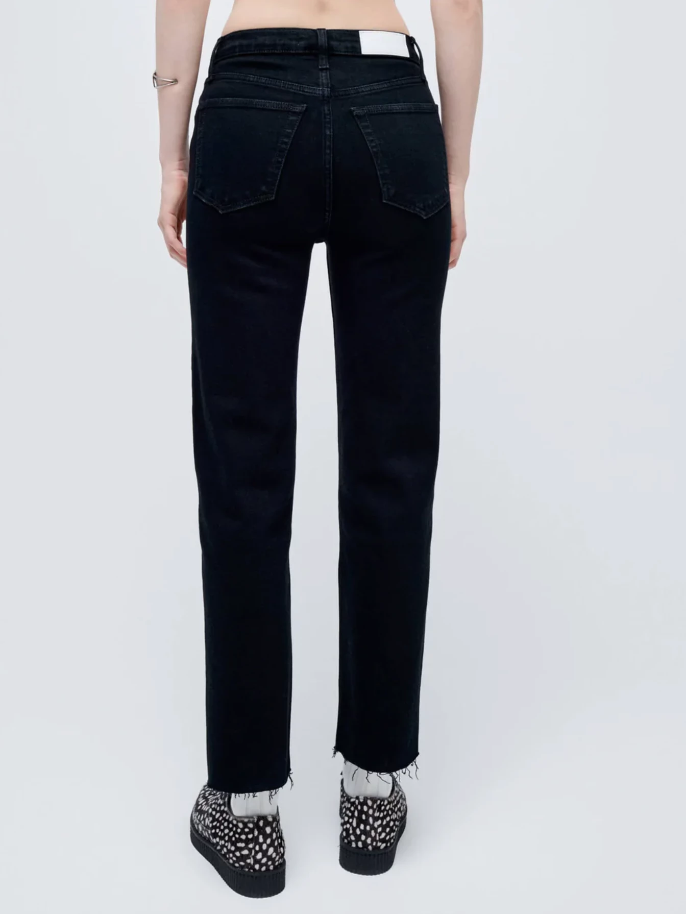 The RE/DONE 70s Stove Pipe in Noir is the brand’s version of the classic 70s-inspired straight-leg jean with a cropped inseam. Features a saturated black wash reminiscent of deadstock denim in extra stretch denim, a classic button fly, and a cut-off hem.