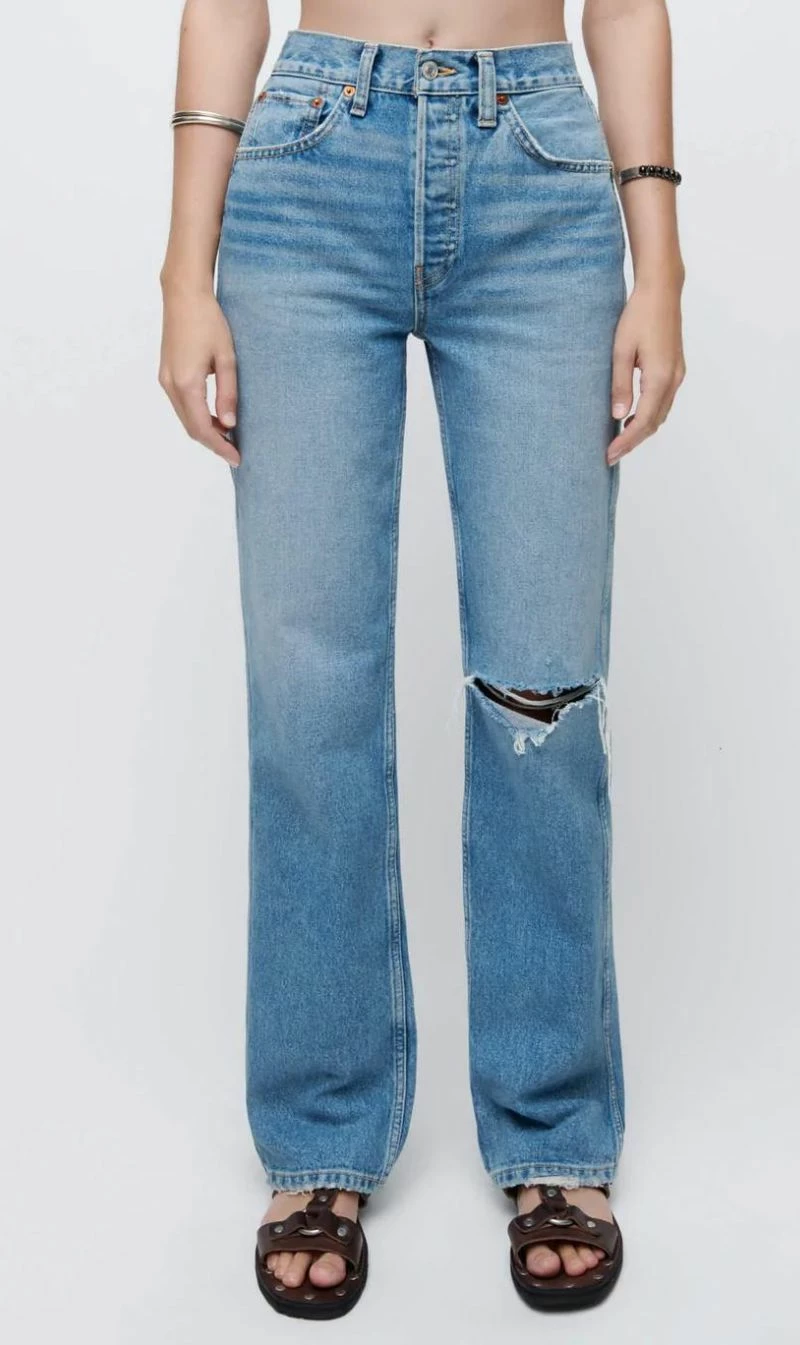The 90s High Rise Loose in Worn Heather Blue is RE/DONES’ take on the iconic long and loose denim from the 90s. Features a vintage inspired faded indigo wash in broken twill rigid fabric a classic button fly, and clean finish hem.