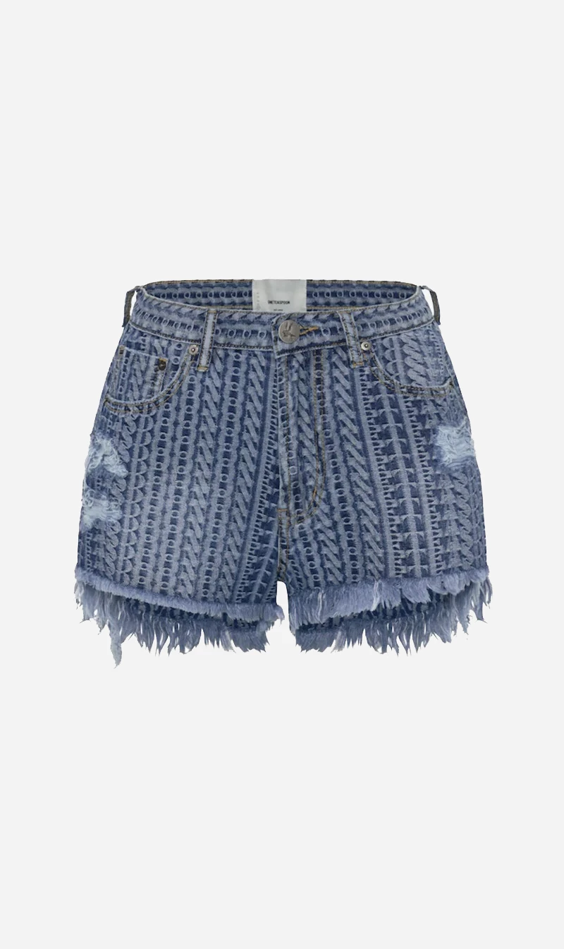 Elevate your summer denim with One Teaspoon’s On Repeat Le Wolves Mid Denim Short in Dark Blue. Featuring fresh patterned denim, these shorts a designed to stand out. With distressed detailing around the hem that grows longer on the back of the shorts.Â