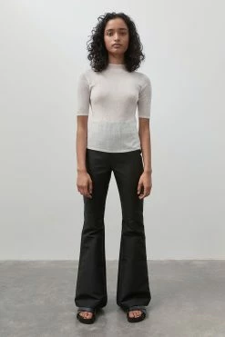 The St Agni High Neck Knit Top in White. Informed by both traditional lines and a modern approach, the High Neck Knit Top is crafted from signature TENCELâ„¢ Lyocell fabric for a superior look and feel. Featuring a high neckline, mid-length sleeve and fitted silhouette, the High Neck Knit Top’s sheer finish allows for effortless layering or for elevated intimates to peek through. The High Neck Knit Top slips on with ease for an uncomplicated, everyday basic.Â
