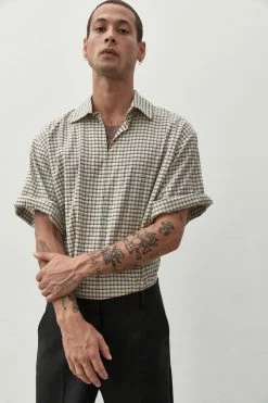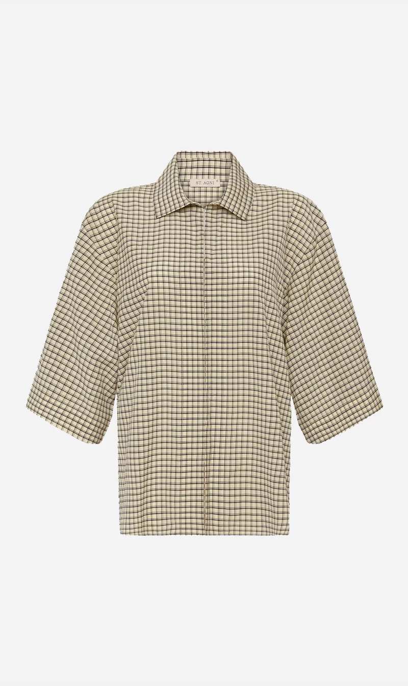 The Short Sleeve Cotton Shirt by St Agni is a loose-fitting shirt that is big on effortless style. With dropped shoulder and 3/4 length sleeves, this is the ideal summer layer and crafted from 50% Cupro, 50% Cotton. Pair with denim shorts for a polished yet casual look.Â