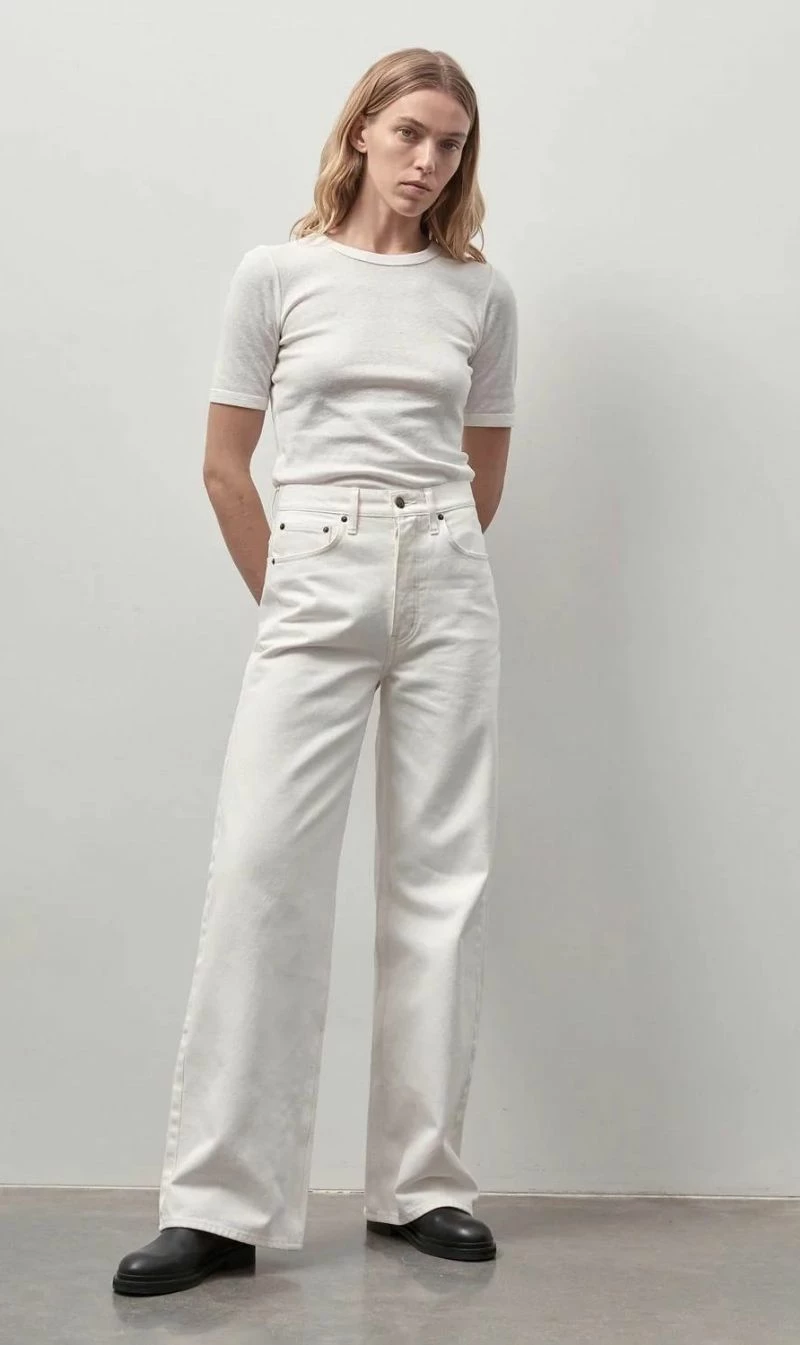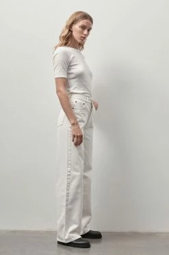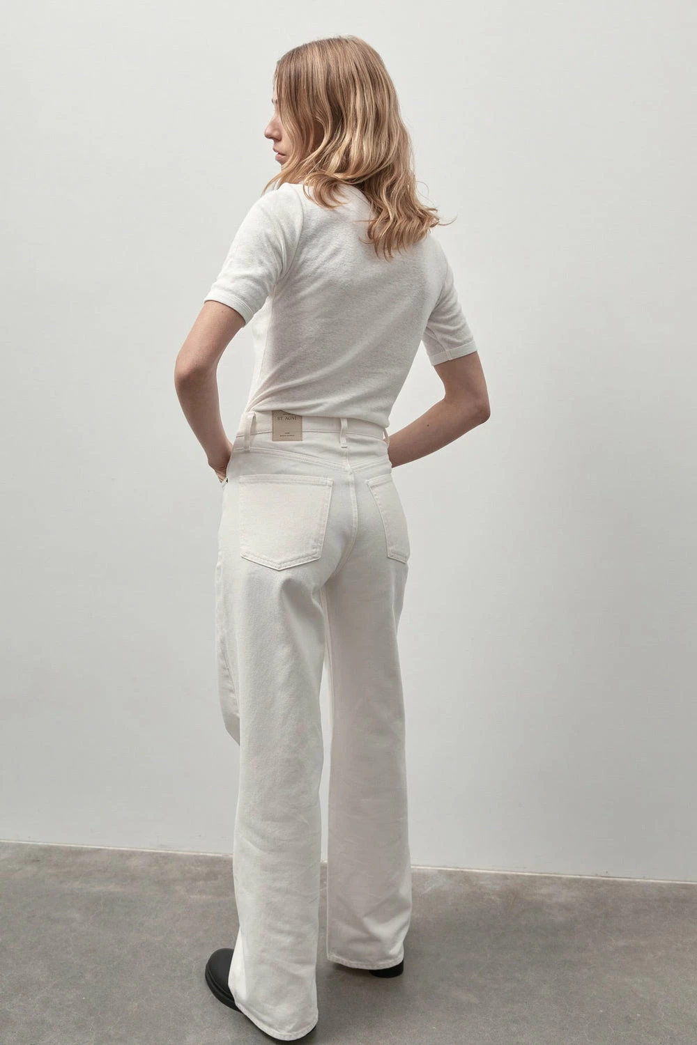 Inspired by the loose and oversized shapes of 90s styling, The Mid Rise Wide Leg Jeans by St. Agni boast a wide-leg and exaggerated silhouette, button-fastening at the front, front/back pockets and leather label patch. Comfortable and slouchy without sacrificing St. Agni’s polished aesthetic, the Mid Rise Wide Leg Jeans lend a casual air to the capsule wardrobe.ÂÂ