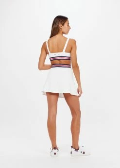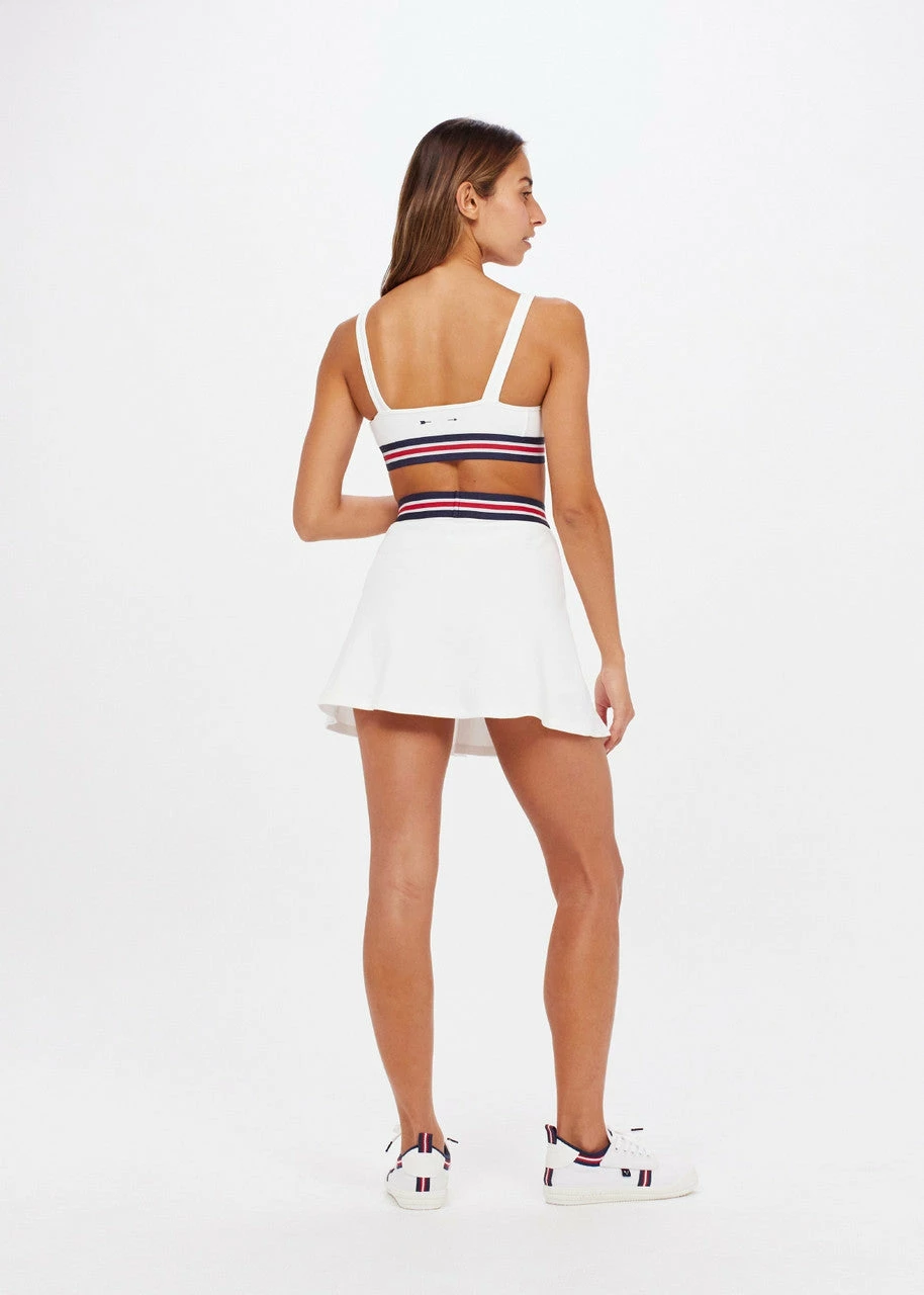 The Upside Love Charlie Skirt is a playful and classic piece to add to your wardrobe. Designed to flatter the figure with an elastic waistband and built-in shorts, this skirt will bring a fun tennis chic vibe to any look. Pair it with the Love Rory Bra in White for a coordinated fit.Â