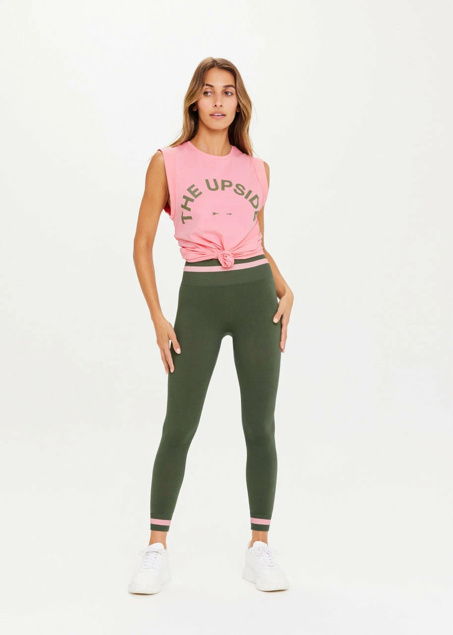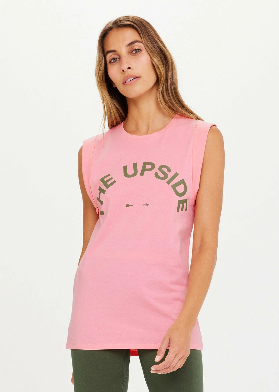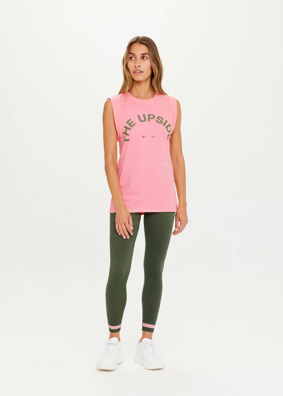 Whether at the gym or cafe hopping, the Muscle Tank by The Upside is an absolute staple. With a relaxed fit, this signature tank features a horseshoe logo in beautiful green. Crafted from organic cotton, pair this sustainably minded tank with your favourite activewear, or layer under a denim jacket for easy days.Â