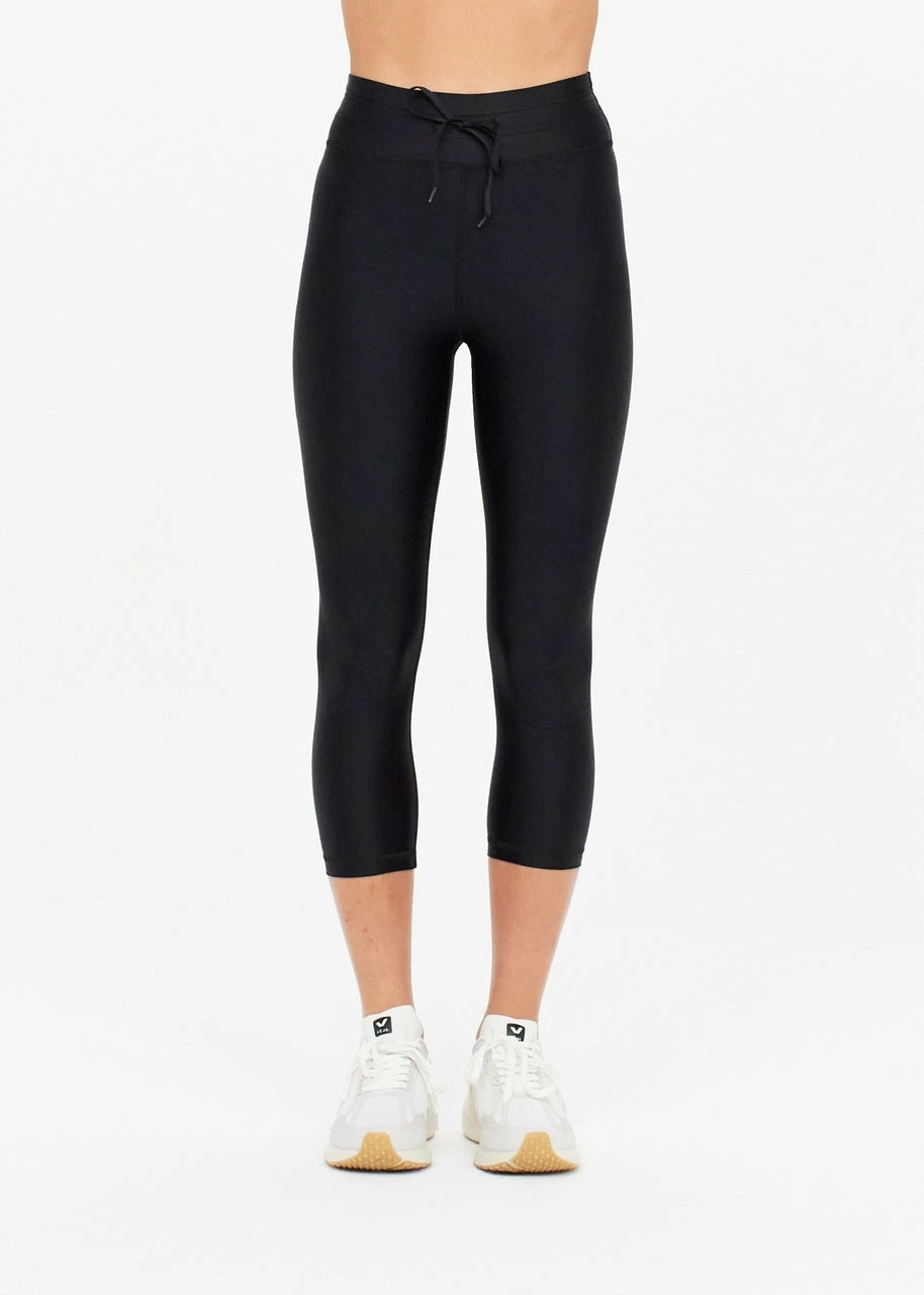 - Mid-rise, 3/4 length legwear in sleek Black.