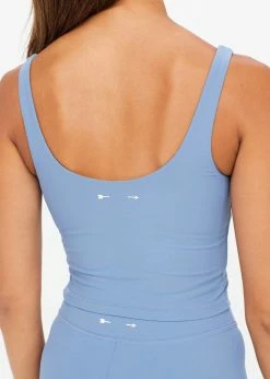The Upside Peached Tess Crop in Denim is a fun addition to your activewear wardrobe. Designed with a soft peach fabric and an inner shelf bra, so that you feel comfortable all workout long. Pair it with the matching Peached Spin Short in Denim to coordinate your workout.