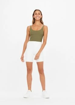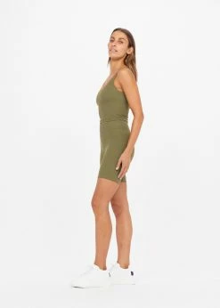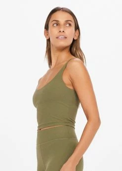 The Upside Peached Tess Crop in Olive is a fun addition to your activewear wardrobe. Designed with a soft peach fabric and an inner shelf bra, so that you feel comfortable all workout long. Pair it with the matching Peached Spin Short in Olive to coordinate your workout.