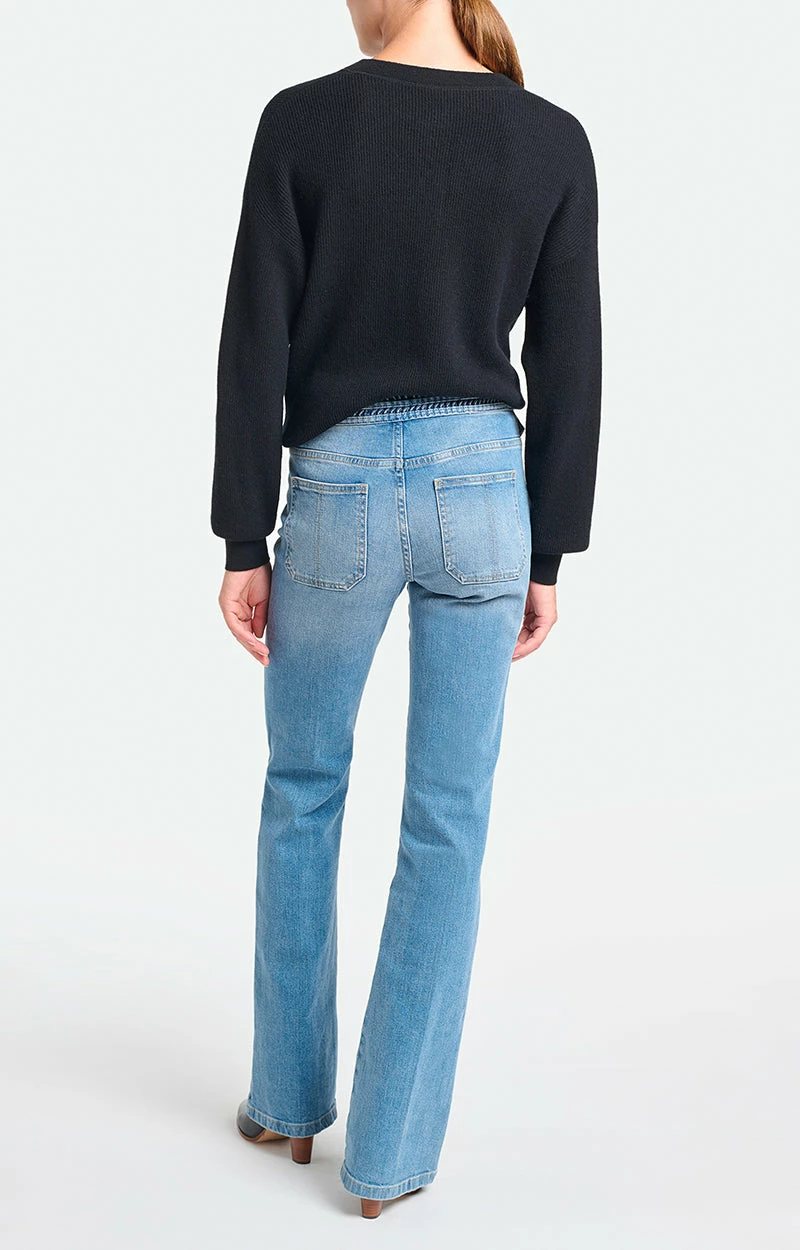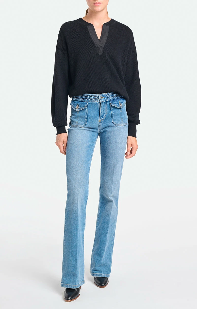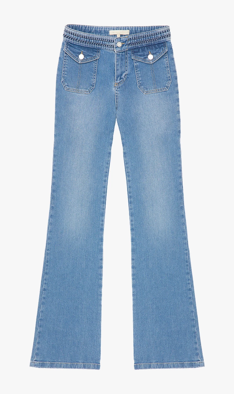 The Vanessa Bruno Nano Jean’s Flare in Indigo Clair is a fun boho-inspired bootcut jean. Designed with standout front pockets and a braided waistband, it is all about the small details of these jeans. Wear yours with a blouse tucked in and heeled boots.