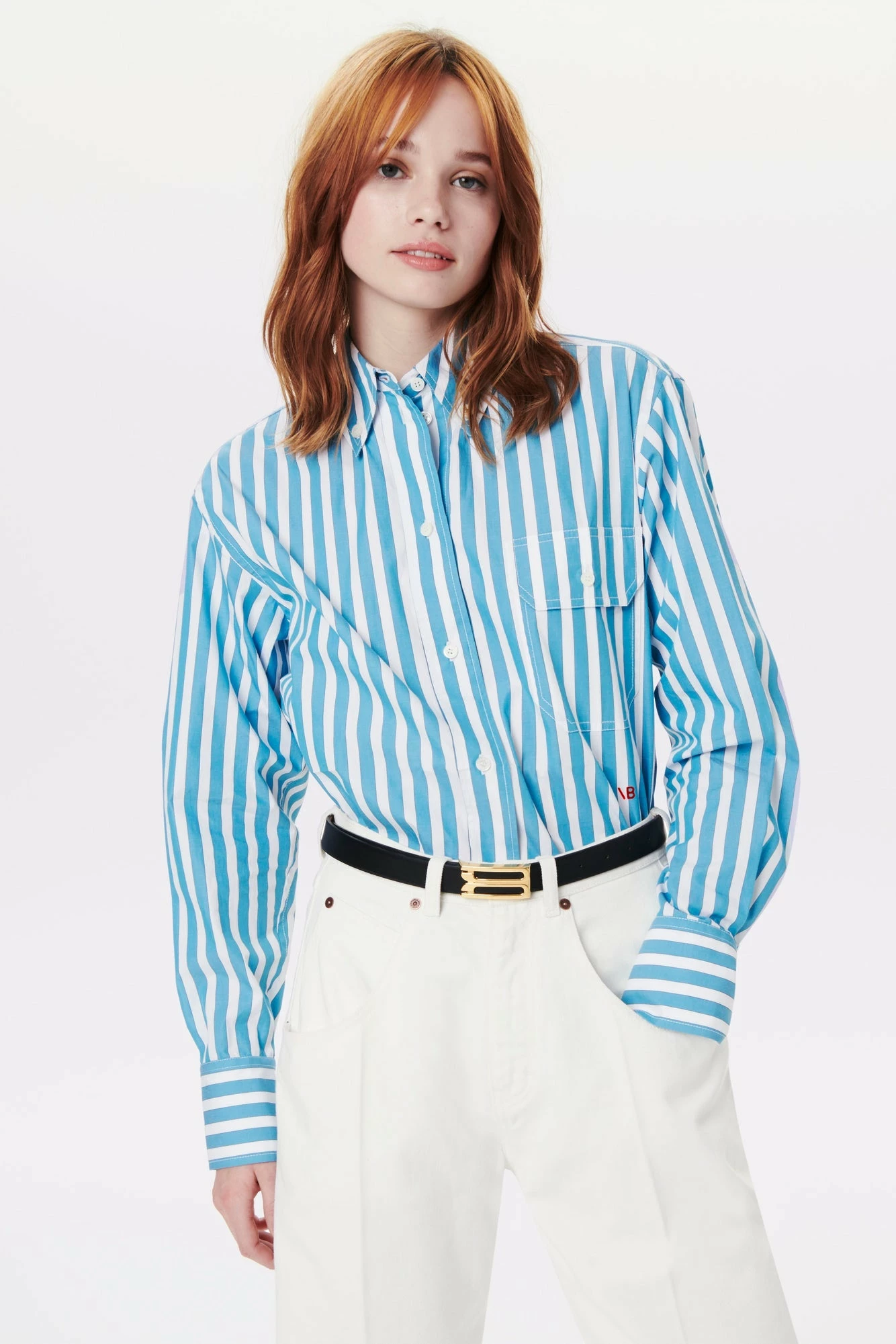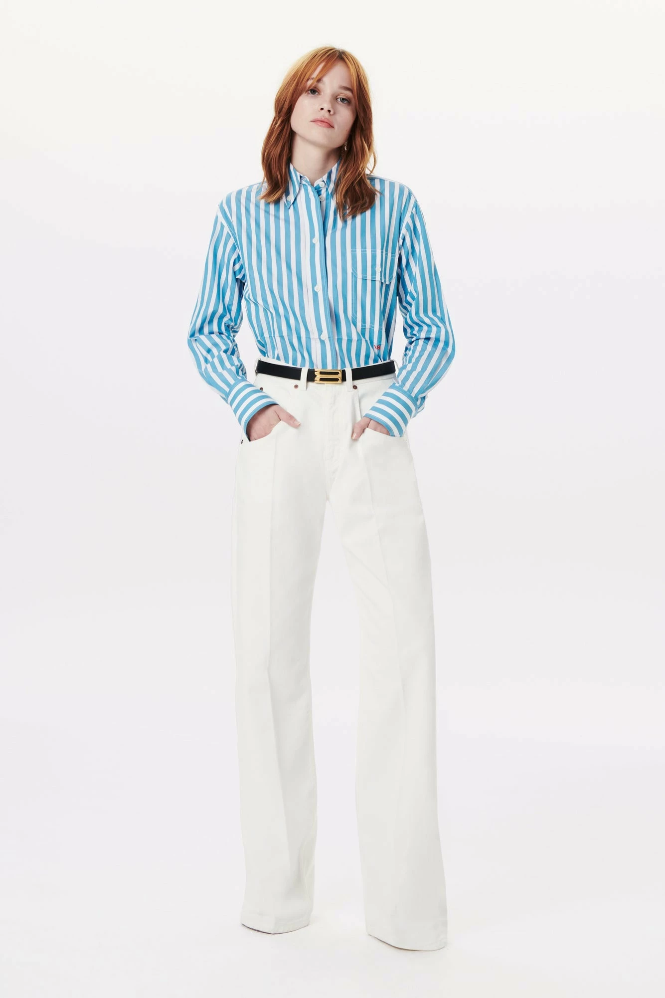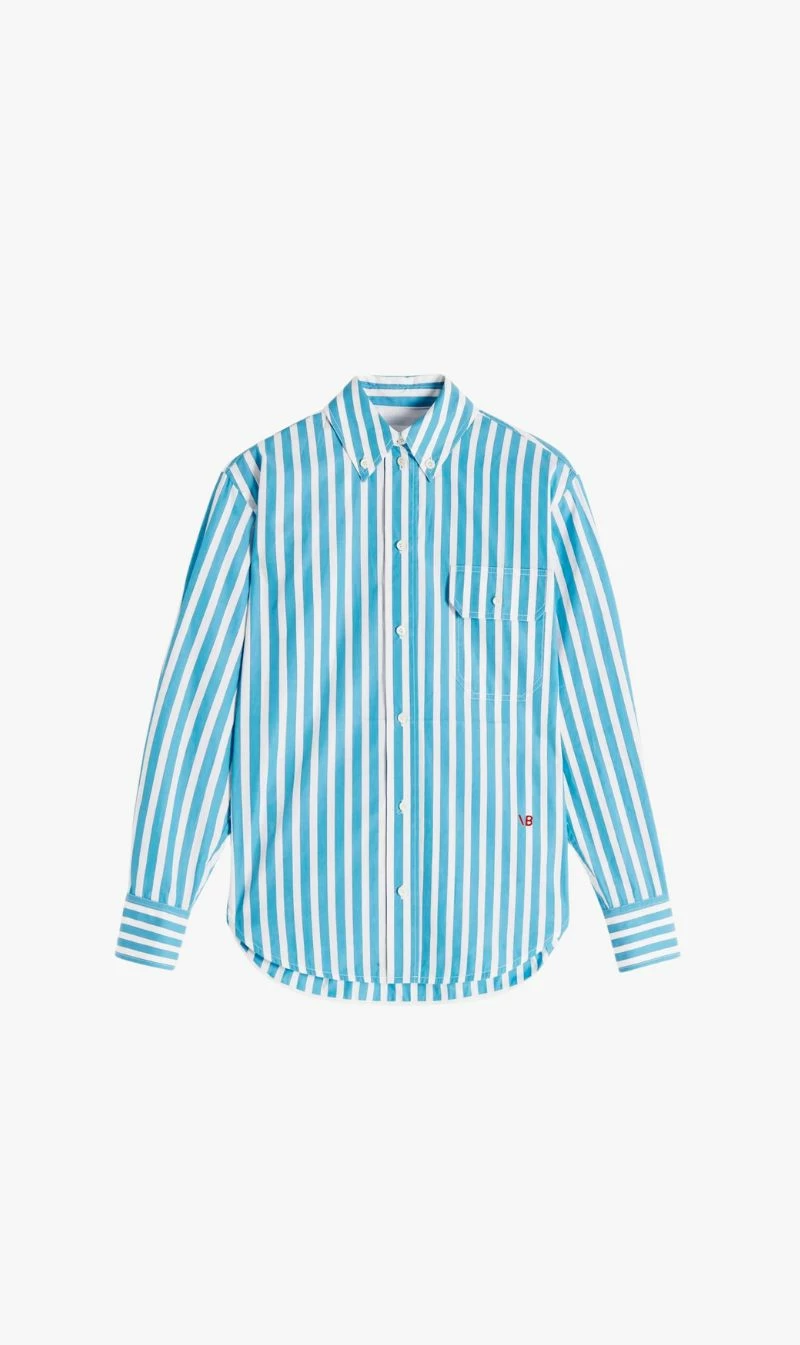This season’s shirting includes styles such as this Oversized Men’s Shirt in Teal & White, inspired by beach chairs. With its classic fit, cotton fabrication, horizontal hard-press and patch pocket with button, it’s an update on a timeless piece and looks good with everything from tailoring to relaxed-fit denim.